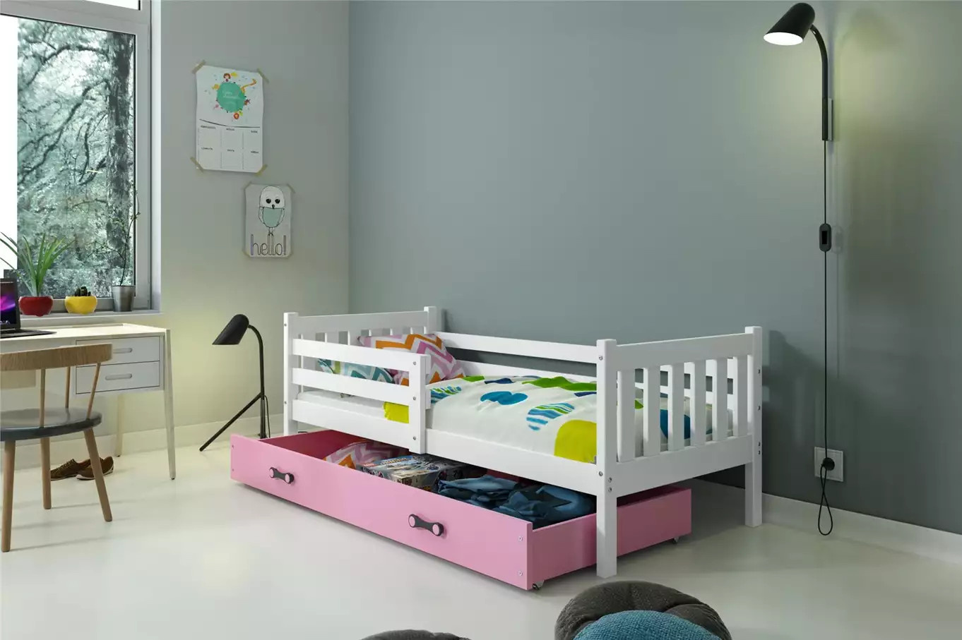 CARINO PARTEROWE RAMA BIAŁY SZUFLADA RÓŻOWY 90 X 200 KPL