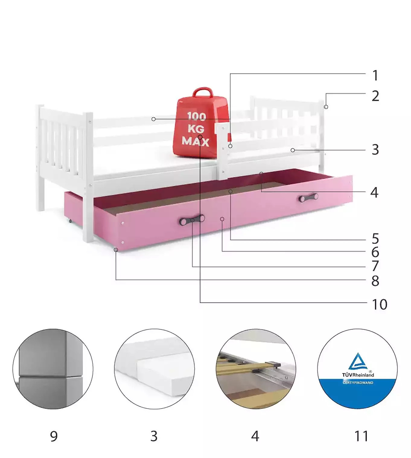 - Certyfikowane łóżko - jakość i bezpieczeństwo zgodnie z normami TUV.
