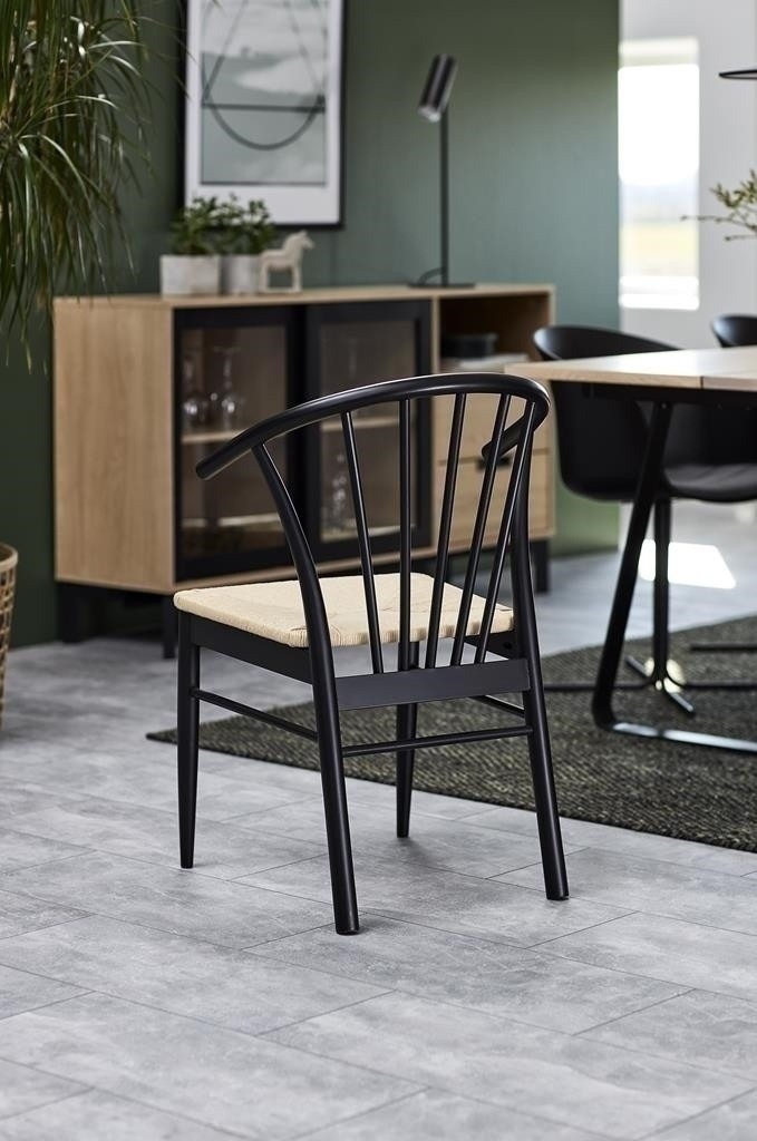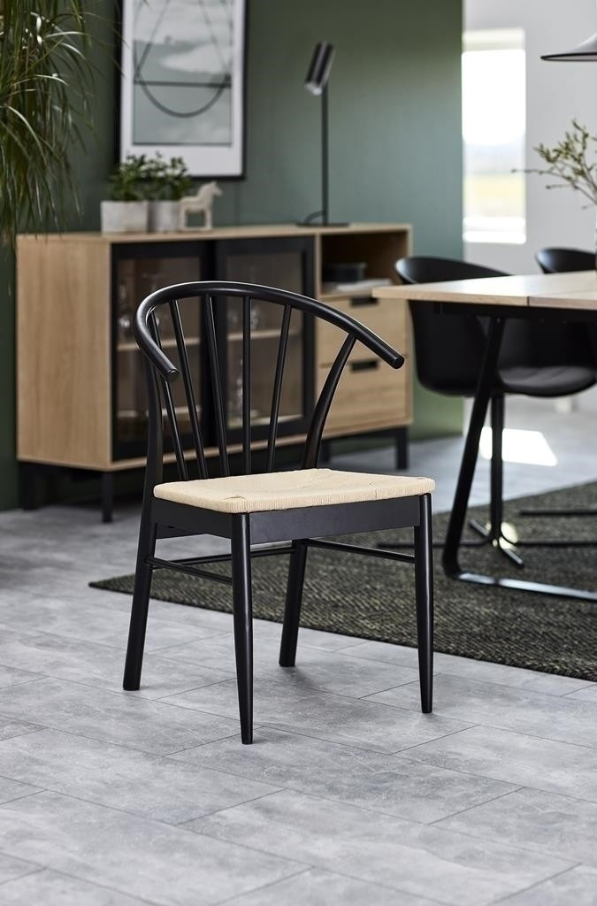 A Cassandra karfás szék ideális bútordarab a boho vagy skandináv stílusú belső terekbe. Kényelmes, ergonomikus kartámaszokkal és széles ülőfelülettel rendelkezik. Papírszövésből készült, amely nemcsak érdekesen és esztétikusan néz ki, hanem nagyon tartós is. A szék fennmaradó részei fekete színű fából készültek. A szék alapját négy láb alkotja, amelyek közül az első lefelé keskenyednek. Hátsó, kissé szélesebb, zökkenőmentesen átmennek a háttámlába. Megfelelő támaszt nyújt a hátnak, és hét függőleges elemből áll, amelyek legyező alakban vannak elrendezve. Kartondobozok száma: 1 Kartondobozok méretei: 57,5x74,5x94cm Kartondobozok súlya: 8,4kg