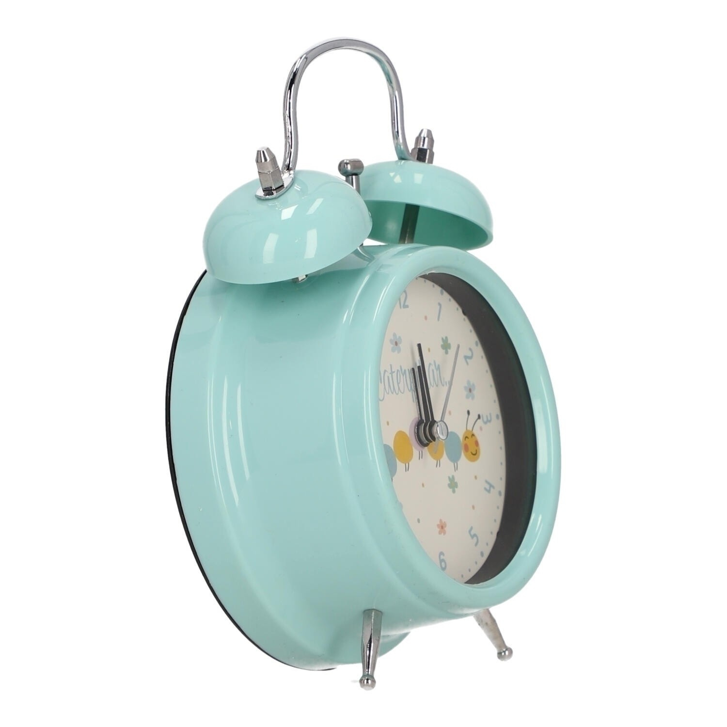Hagyományos ébresztőóra műanyagból, négy különböző színben választható. A bájos dizájn ideális éjjeliszekrényekké teszi őket gyerekszobákba és bölcsődékbe. Egy darab AA elemet igényel, amely nem része a csomagnak. Ez az óra ketyeg és hangjelzést ad, amikor bekapcsol az ébresztő - a harangok nem csengenek.