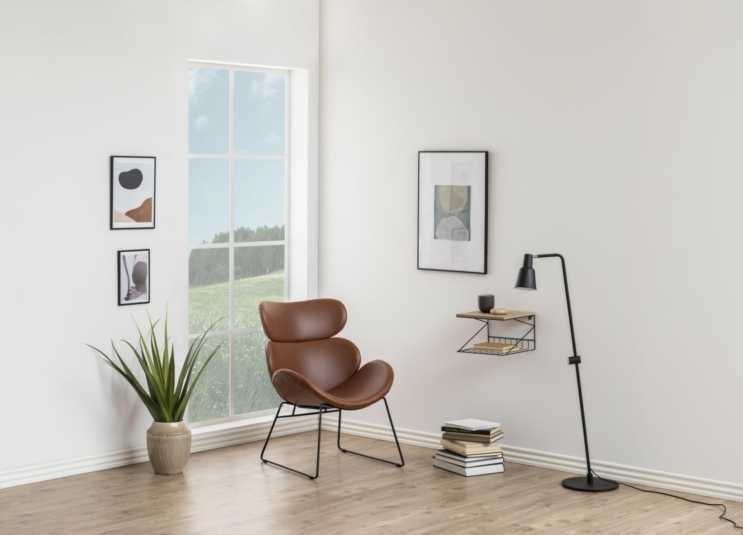A Cazar szék barna ökobőrből és fekete porszórt fém alappal készült.