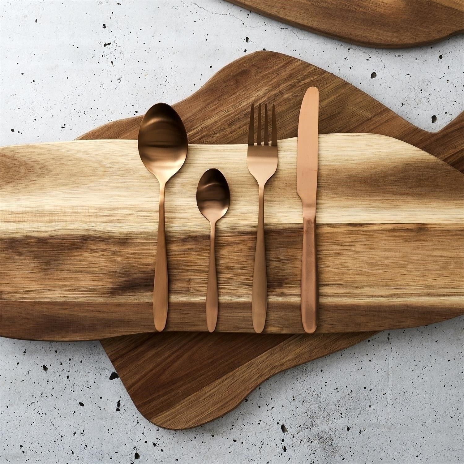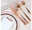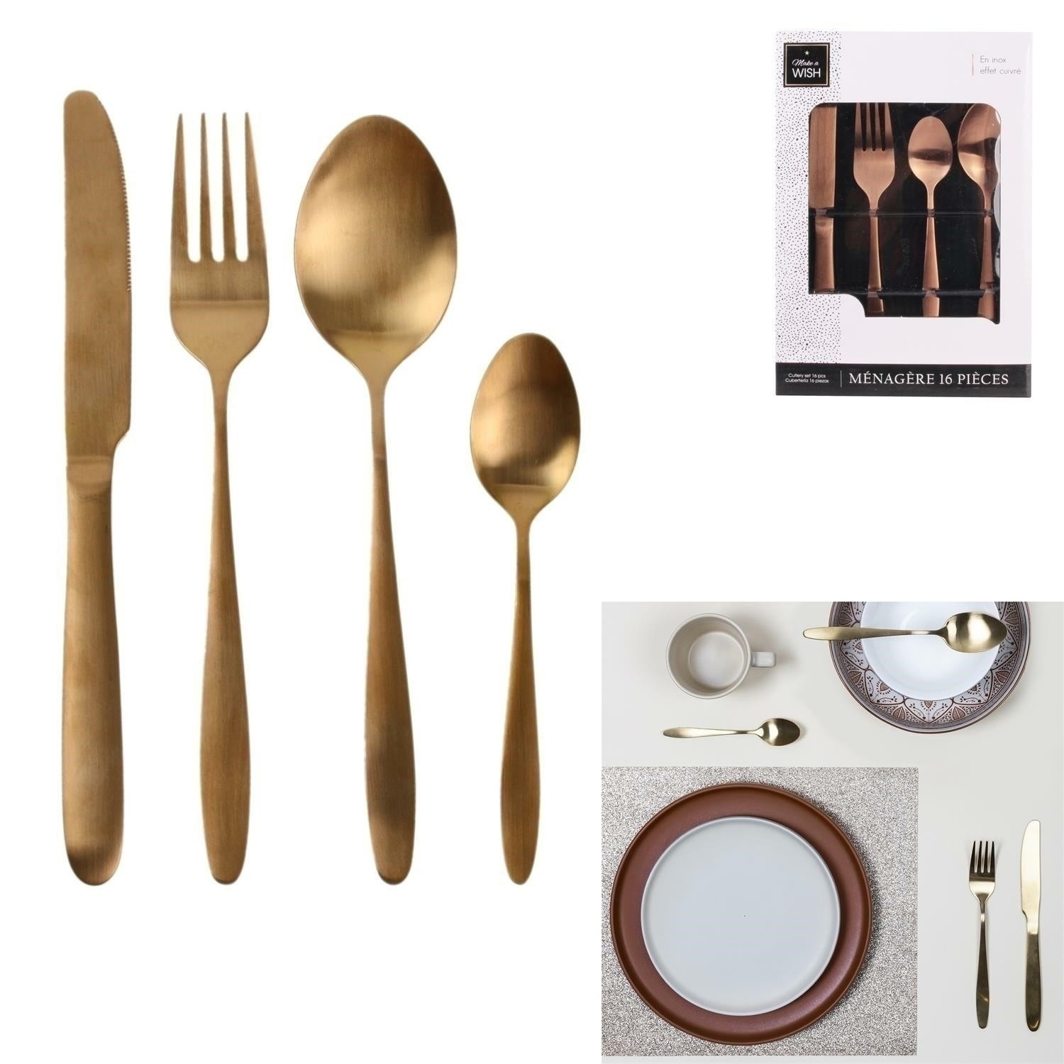 Szereted meglepni vendégeidet szépen megterített asztallal? Az arany színű rozsdamentes acél evőeszközkészlet megbízható eleme az asztalnak. A készlet 16 darabból áll. elemek, aminek köszönhetően négy személyre teríthetünk. Az evőeszközök mosogatógépben moshatók. Csomag méretei 24,50 × 5,00 × 16,60 cm