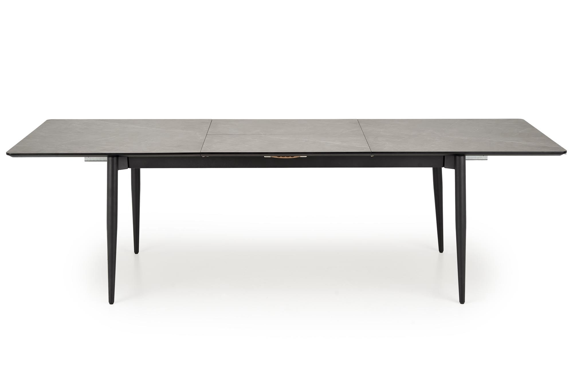 wymiary: 180-260/90/76/80-170 cm; stół rozkładany, materiał: MDF okleinowany - melamina / stal malowana proszkowo, kolor: blat - popielaty marmur, nogi - czarny