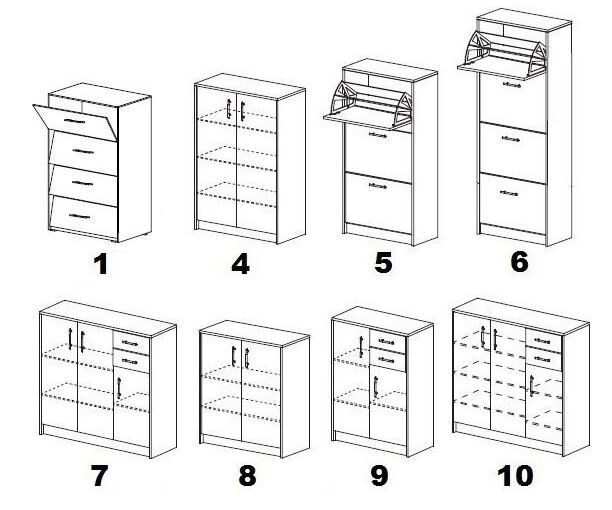 A belső tér képe illusztratív a cipősszekrény fehér kiviteléről