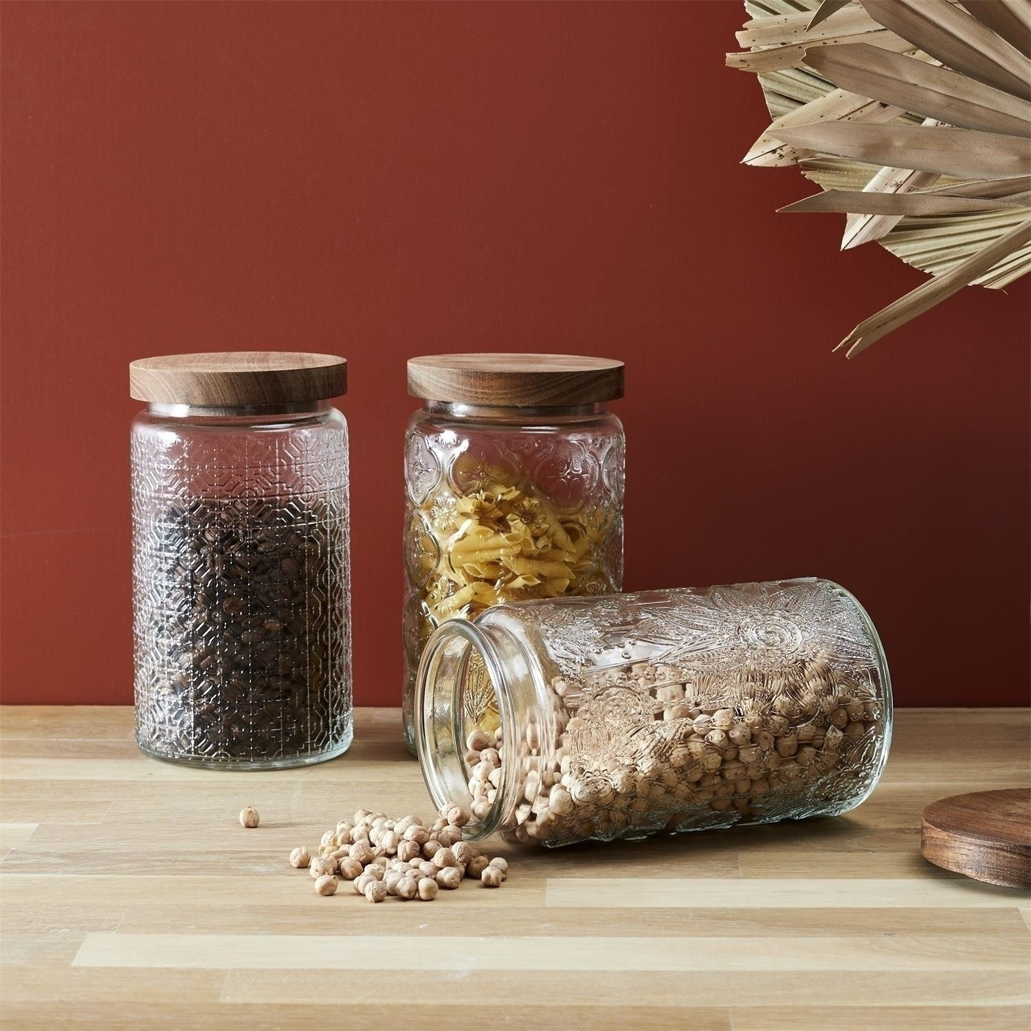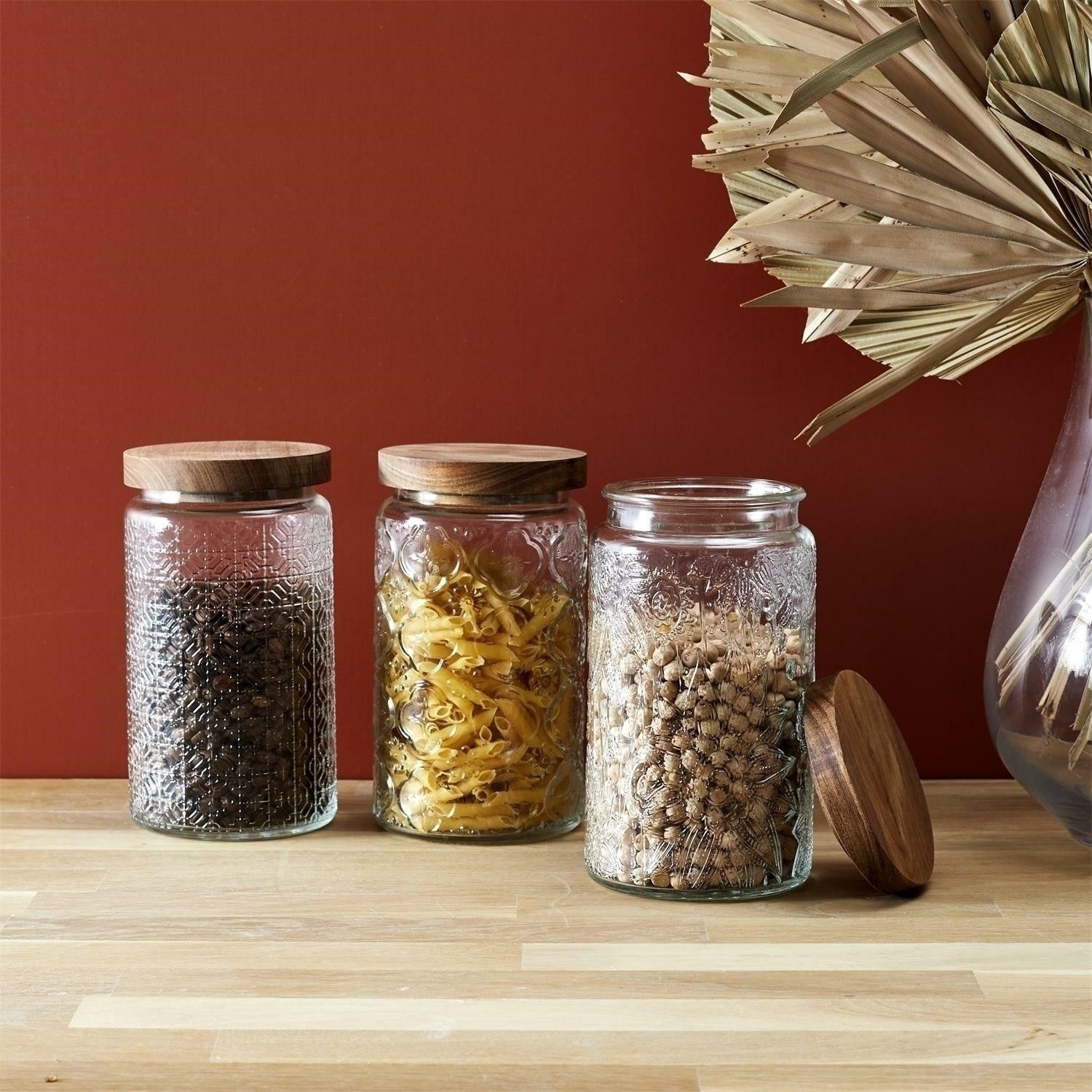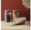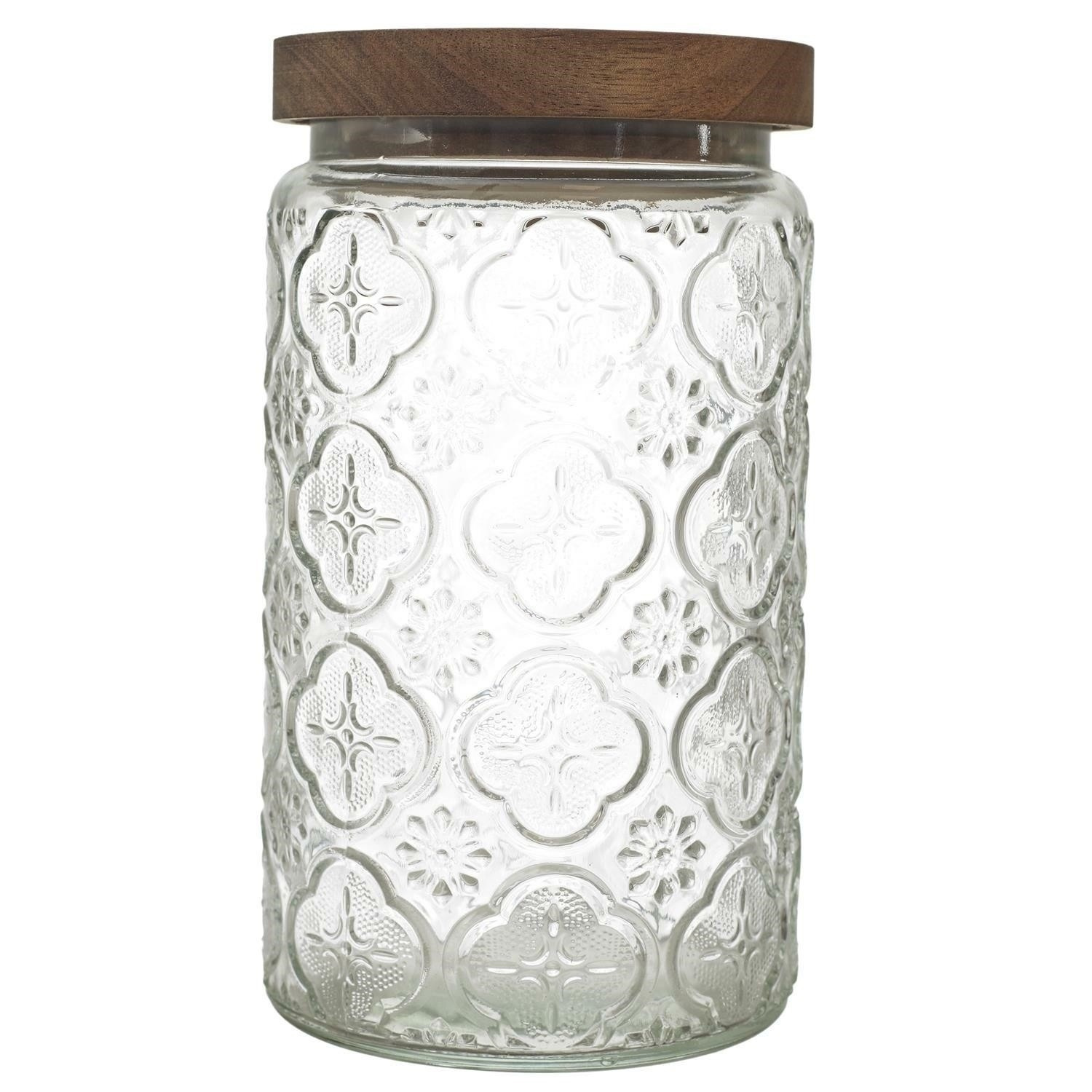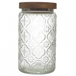 Stílusos Cisele üveg 1 literes űrtartalommal, elegáns akácfa fedéllel ellátva. Kiváló minőségű üvegből készült, ideálisan alkalmas fűszerek, teák, kávé vagy apró finomságok tárolására. Az átlátszó szerkezet lehetővé teszi a tartalom könnyű megfigyelését, míg a természetes fedél biztosítja a tárolt termékek szorosságát és hosszabb frissességét. Az egyszerű, de elegáns kialakításnak köszönhetően a pohár remekül illik bármely konyhába, eleganciát és funkcionalitást kölcsönözve neki. A termék hossza: 9,8 cm A termék magassága: 17,8 cm A termék mélysége: 9,8 cm Átmérő: 9,8 cm A termék súlya: 570 g Anyag: Üveg, akác, szilikon