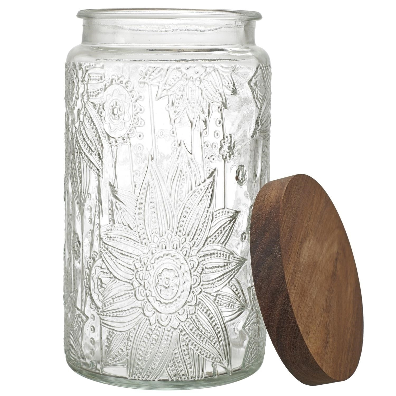Cisele üveg akácfa fedéllel 1l virágok