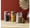 Stílusos Cisele üveg 1 literes űrtartalommal, elegáns akácfa fedéllel ellátva. Kiváló minőségű üvegből készült, ideálisan alkalmas fűszerek, teák, kávé vagy apró finomságok tárolására. Az átlátszó szerkezet lehetővé teszi a tartalom könnyű megfigyelését, míg a természetes fedél biztosítja a tárolt termékek szorosságát és hosszabb frissességét. Az egyszerű, de elegáns kialakításnak köszönhetően a pohár remekül illik bármely konyhába, eleganciát és funkcionalitást kölcsönözve neki. A termék hossza: 9,8 cm A termék magassága: 17,8 cm A termék mélysége: 9,8 cm Átmérő: 9,8 cm A termék súlya: 570 g Anyag: Üveg, akác, szilikon
