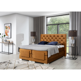The Clover is a 100% answer to the current requirements of seeking maximum comfort. This model, thanks to its electric control, adapts to the user's individual preferences, so he can choose, for example, the most optimal mattress height for himself. All this with the help of 2 remote controls, which are located on both sides of the bed. The Boxspring Clover comes with three separate mattresses, which create a spacious sleeping surface regardless of the size of the bed, as well as a topper. A choice of four surfaces is available: 90/ 140/ 160/ 180 x 200 cm. Further features of our Clover continental bed include: a durable frame fully upholstered in upholstery fabric, a stylish quilted backrest, and elegant chrome legs. A wide range of colors allows you to match the furniture to your bedroom interior and your own aesthetic preferences. Boxspring Clover is without a doubt, a unique bed that delights, and thanks to its unparalleled functionality, it will certainly stand up not only to the task, but also to individual expectations.