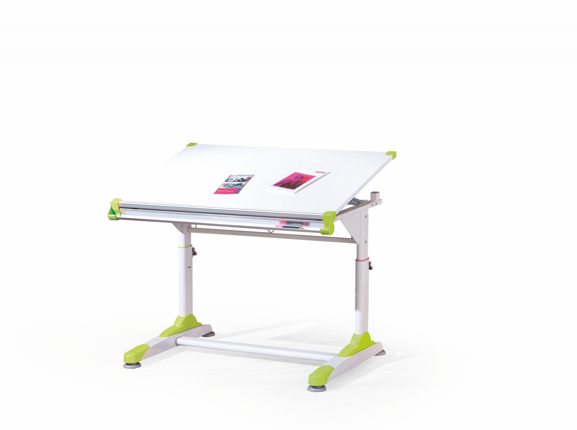 állítható magasságú és állítható dőlésszögű asztal, méretek: 100/66/69÷84 cm, anyag: lakkozott MDF / lakkozott acél, szín: fehér-zöld-rózsaszín (2 készlet műanyag burkolat tartozék).