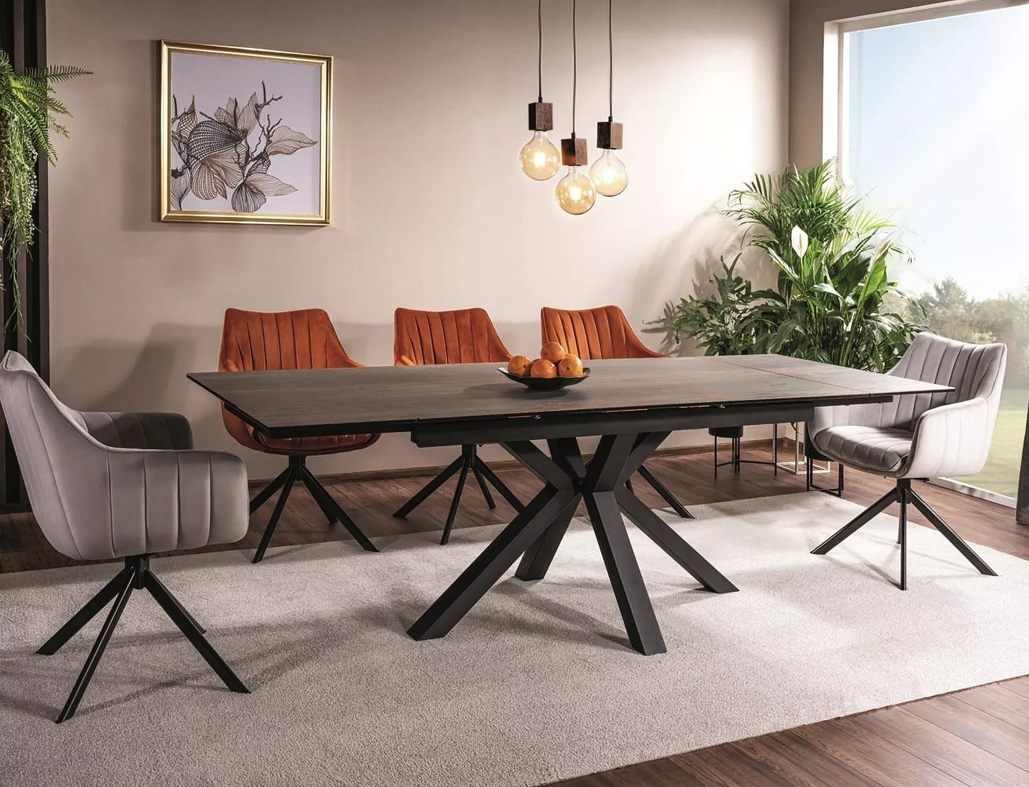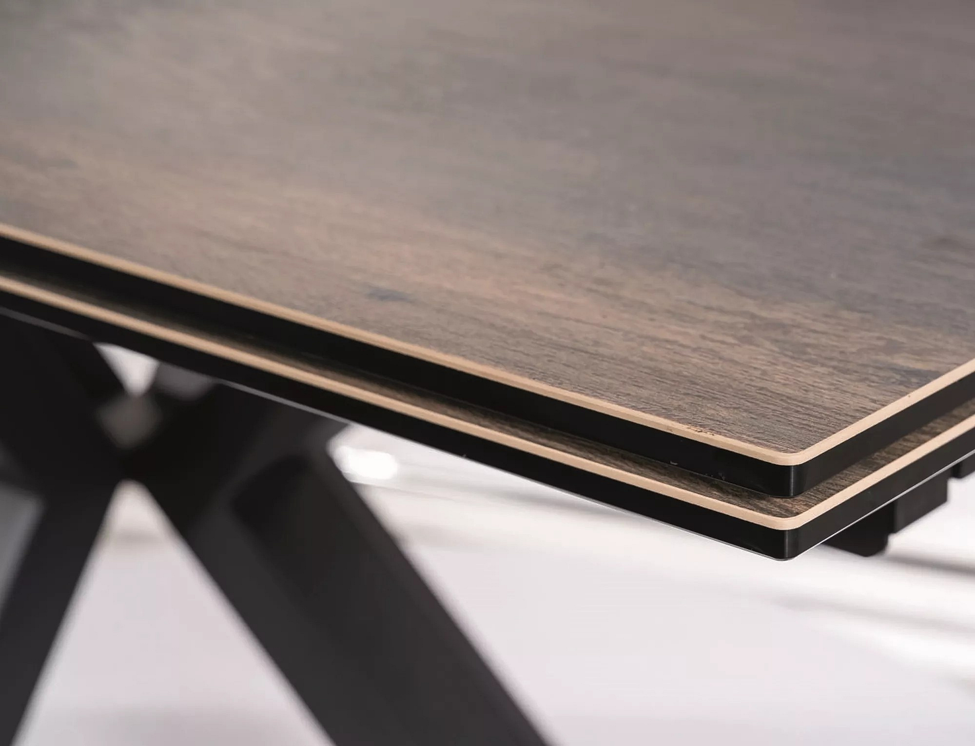 COLUMBUS CERAMIC étkezőasztal, Fa hatás, Barna/Fekete matt