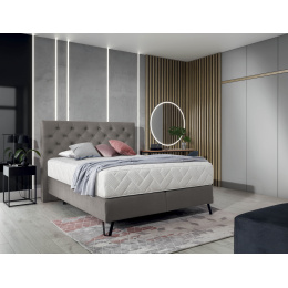 The Cortina continental bed will complement the bedroom decor in a discreet, minimalist style. It is a piece of furniture built with a solid boxspring, metal black legs and an ornate headrest. Boxspring Cortina is available in 3 sleeping surface options to choose from: 140x200 cm, 160x200 cm, 180x200 cm. Filling the headrest with foam provides additional soft support for the head. In addition, the headrest is decorated with quilting and stitching - all together forming dozens of rhombuses, which adds to the charm of the furniture. An important part of any bed is also the mattress, and in this case we include a super-comfortable mattress. The Boxspring Cortina comes with a pocket mattress, which is a product with pocket springs that increase the level of comfort when resting. In addition to the advantages associated with a comfortable mattress, remember that you can also choose the color and texture of the upholstery fabric from our extensive ELTAP collection.
