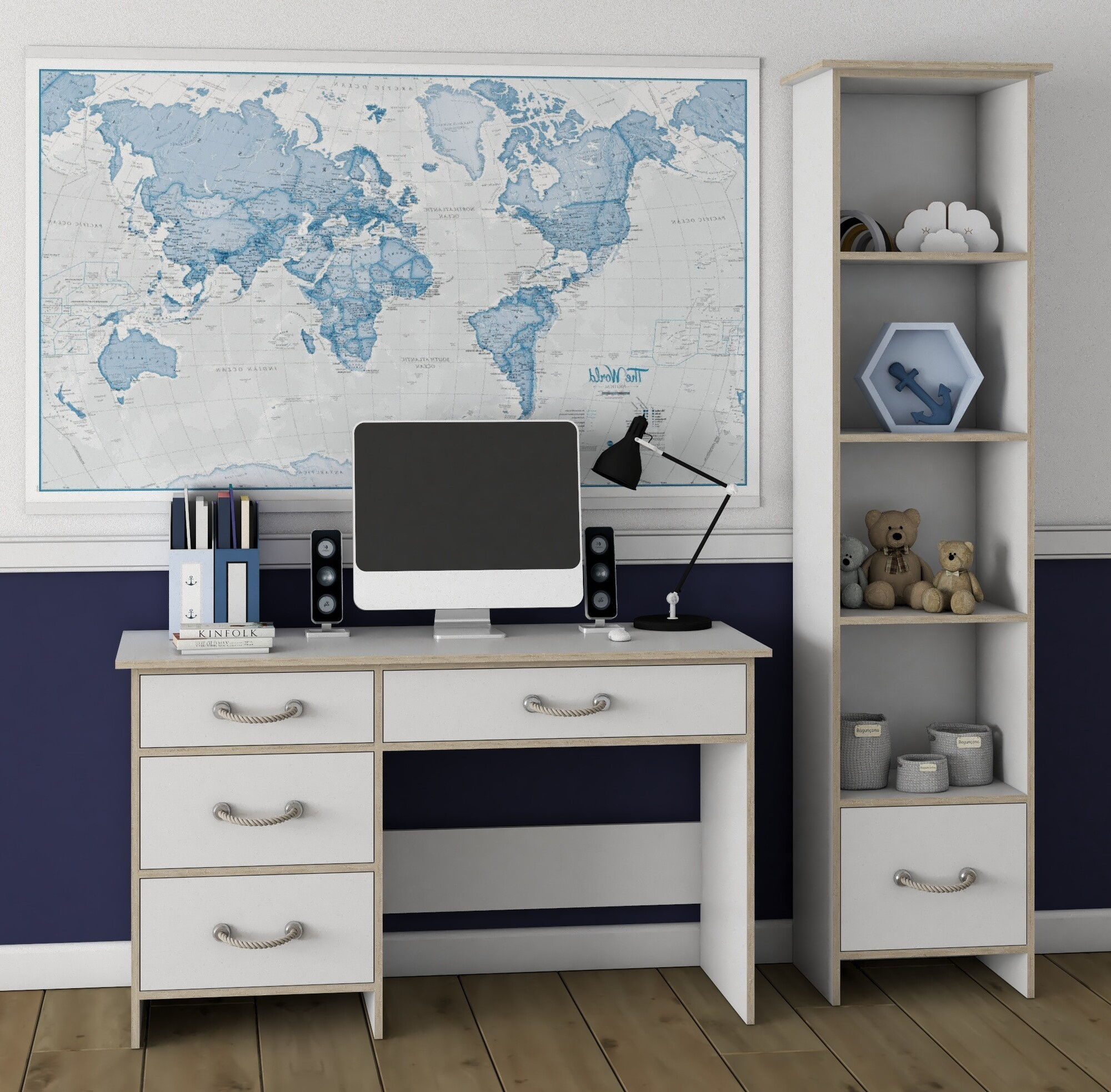 A COSMO rendszer praktikus bútor a gyerekszobába, amely elbűvöl a tengerész stílusú díszítő fogantyúkkal.