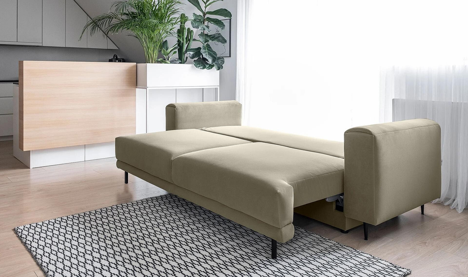 We designed the Dalia sofa for people who value comfort and convenience. The uniqueness of the sofa lies in its functionality. The 260 cm long sofa with an exceptionally large sleeping surface, 215x145cm, will be perfect for modernistic rooms as well as those with a more classic look. Exceptional comfort has been achieved through the use of highly flexible HR foam and corrugated spring. Elegant and modern look of the sofa was achieved thanks to high black legs. Dalia sofa is made of high quality components and specially selected fabrics.