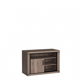 Gyönyörű kocka alakú RTV szekrény, amely tökéletesen illeszkedik a trendekhez. Különleges megjelenésének és magas funkcionalitásának köszönhetően tökéletesen kiemelkedik majd szerettei körében, és kellemes légkört teremt. A bútor három polccal van felszerelve, két kisebbel és egy nagyobbal, amelyek közül az egyiket szekrény fedi. Ideális hely minden apróságnak, kiegészítőnek vagy hasznos tárgynak. Ne feledkezzünk meg az asztallapról sem, amelyen remekül mutatnak majd a díszek és szuvenírek. Fém fogantyúk és élek az előlapokon lenyűgöző elrendezéssé teszik. Kapható két színben.