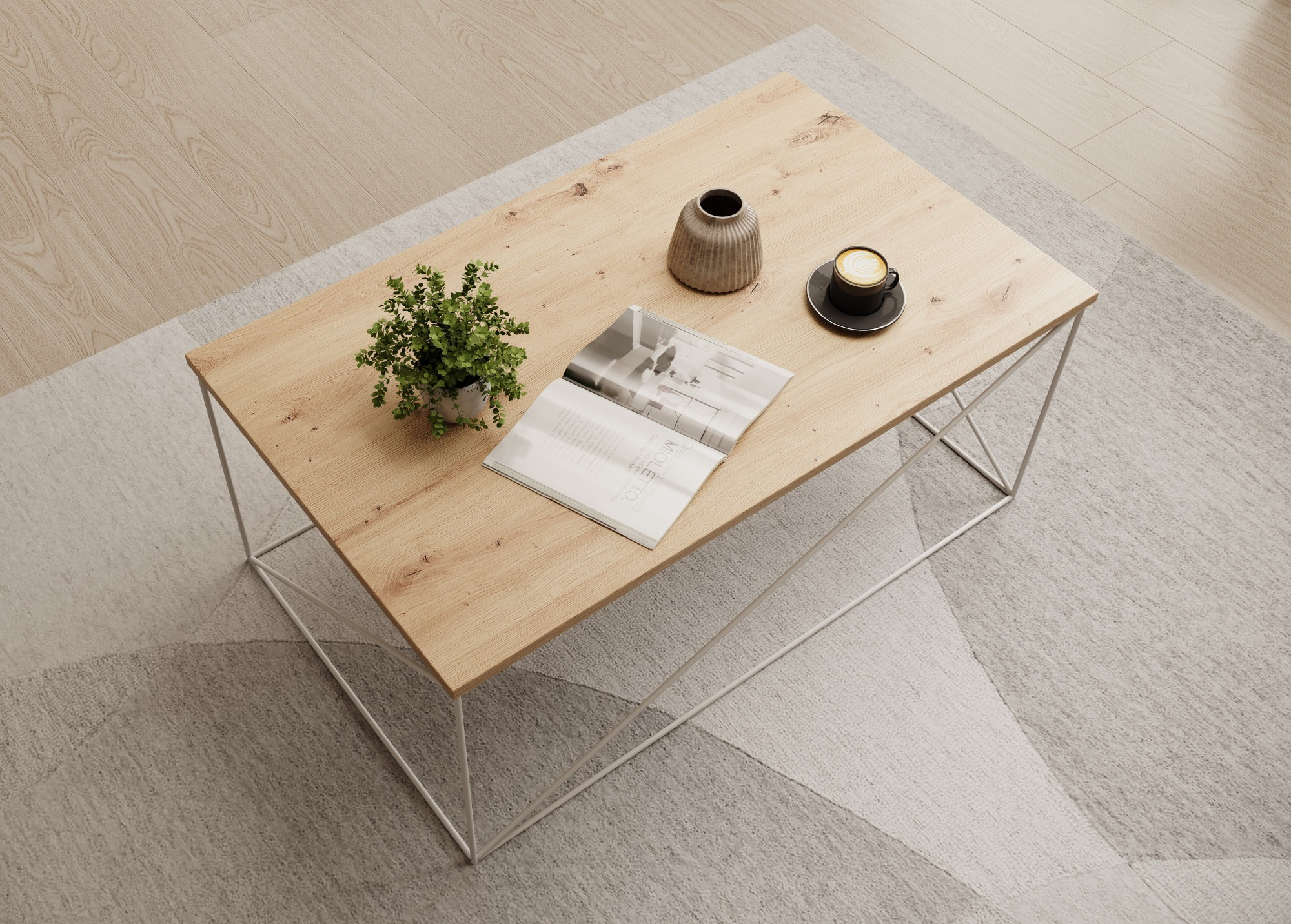 A Dante dohányzóasztal egy elegáns és funkcionális bútordarab, amely remekül illik a modern belső terekbe. Téglalap alakú tálcája, amely kiváló minőségű anyagokból készült, nagy felületet kínál, ideális kávé felszolgálására, dekorációk kiállítására vagy apróságok tárolására. A Dante dohányzóasztal nemcsak praktikus, hanem stílusos kiegészítője is a nappalijának. A deszka és a lábak színének megválasztásával mindenki megtalálja az ideális megoldást, amely kiemeli a belső tér jellegét és stílusát.