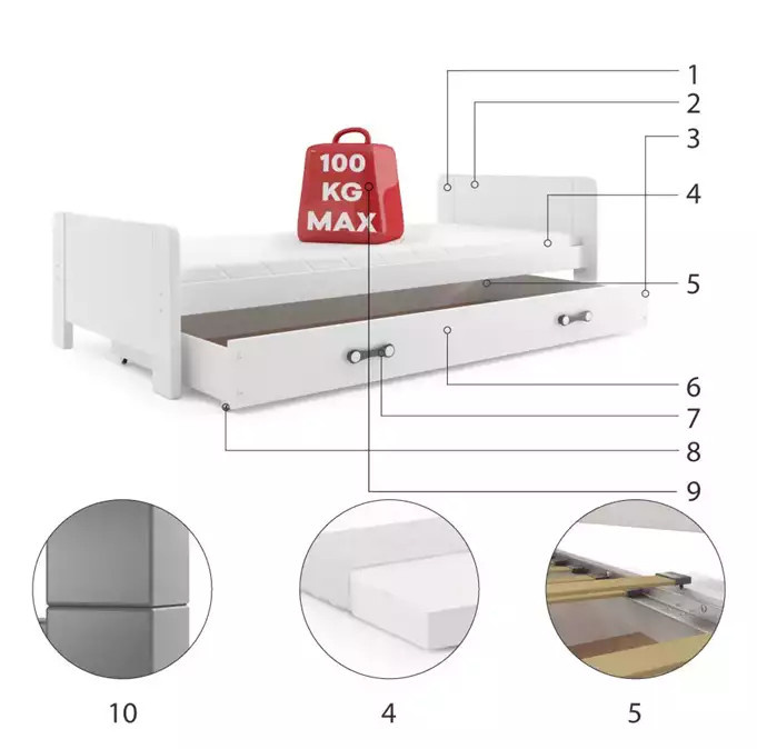 DAREK PARTEROWE RAMA BIAŁY SZUFLADA BIAŁY 80 X 200 KPL