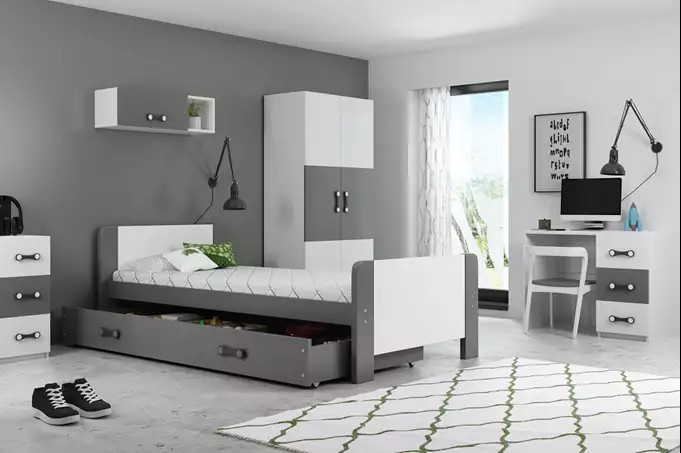 DAREK PARTEROWE RAMA GRAFIT WYPEŁNIENIA BIAŁE SZUFLADA GRAFIT 80 X 200 KPL