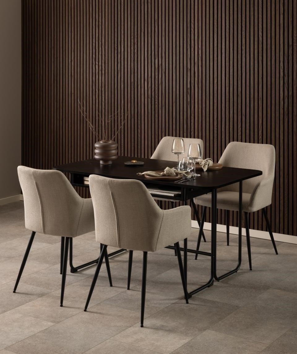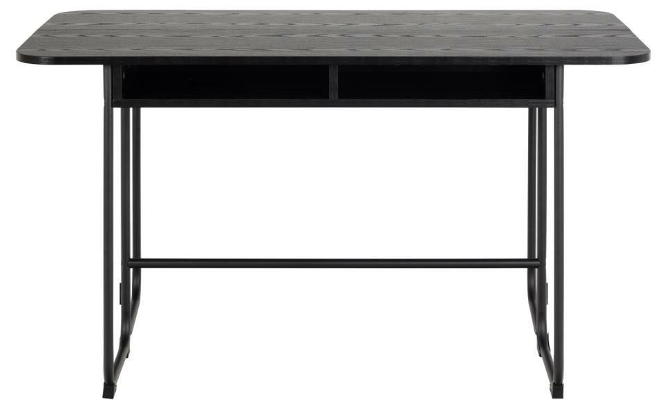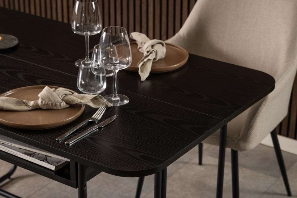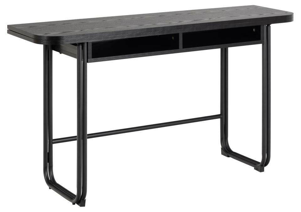 Darlington téglalap alakú étkezőasztal, durva melamin lapból készült asztallap és 2 polc hamuszürke színben, matt, durva acél alap fekete porfestékkel festve, kihúzható szárnnyal a tárolóhely számára.Bemutatjuk az étkezőasztalt, amely lehetővé teszi a tér okos kihasználását. Beépített kihúzható szárnnyal tervezve, a felület 40 cm-rel növelhető. Az asztal fekete, csöves alapon áll, és egy elegáns, texturált felületű, fekete kőris dekorú asztallapot tart. Helyezd el a térben vagy a falhoz - ugyanúgy fog kinézni. Összeszerelést igényel. A bútor súlya 24,4 kg. Az asztallap maximális terhelhetősége 31,25 kg. Kartondoboz méretei: 156x49,5x12cm