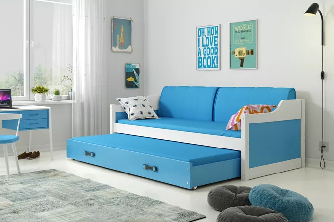 DAWID PODWÓJNE RAMA BIAŁY WYPEŁNIENIA NIEBIESKI SZUFLADA NIEBIESKI 90 X 200 KPL