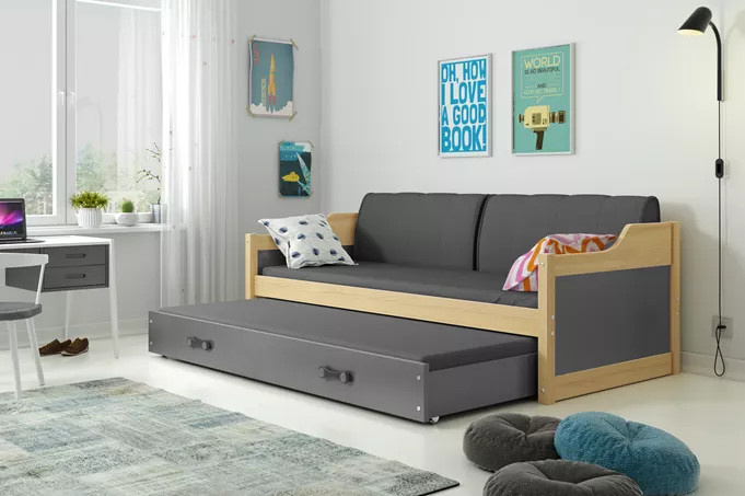 DAWID PODWÓJNE RAMA SOSNA WYPEŁNIENIA GRAFIT SZUFLADA GRAFIT 90 X 200 KPL