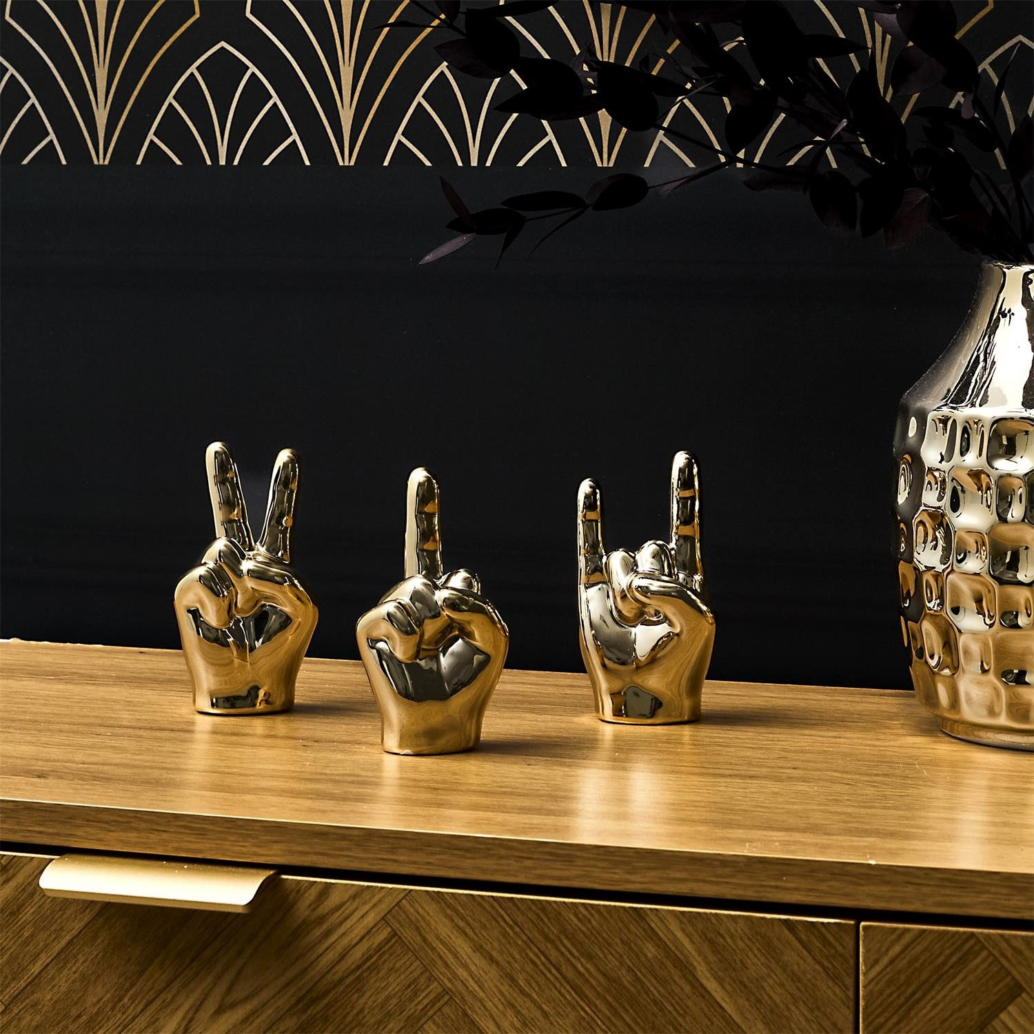 A dekoratív kerámia kéz alakú figura egy modern, fényes dísz, amely egy kis őrültséget visz a belső térbe. A figura 3 mintával és 2 méretben kapható. Össze lehet őket kapcsolni, és kézmozaikot lehet készíteni.