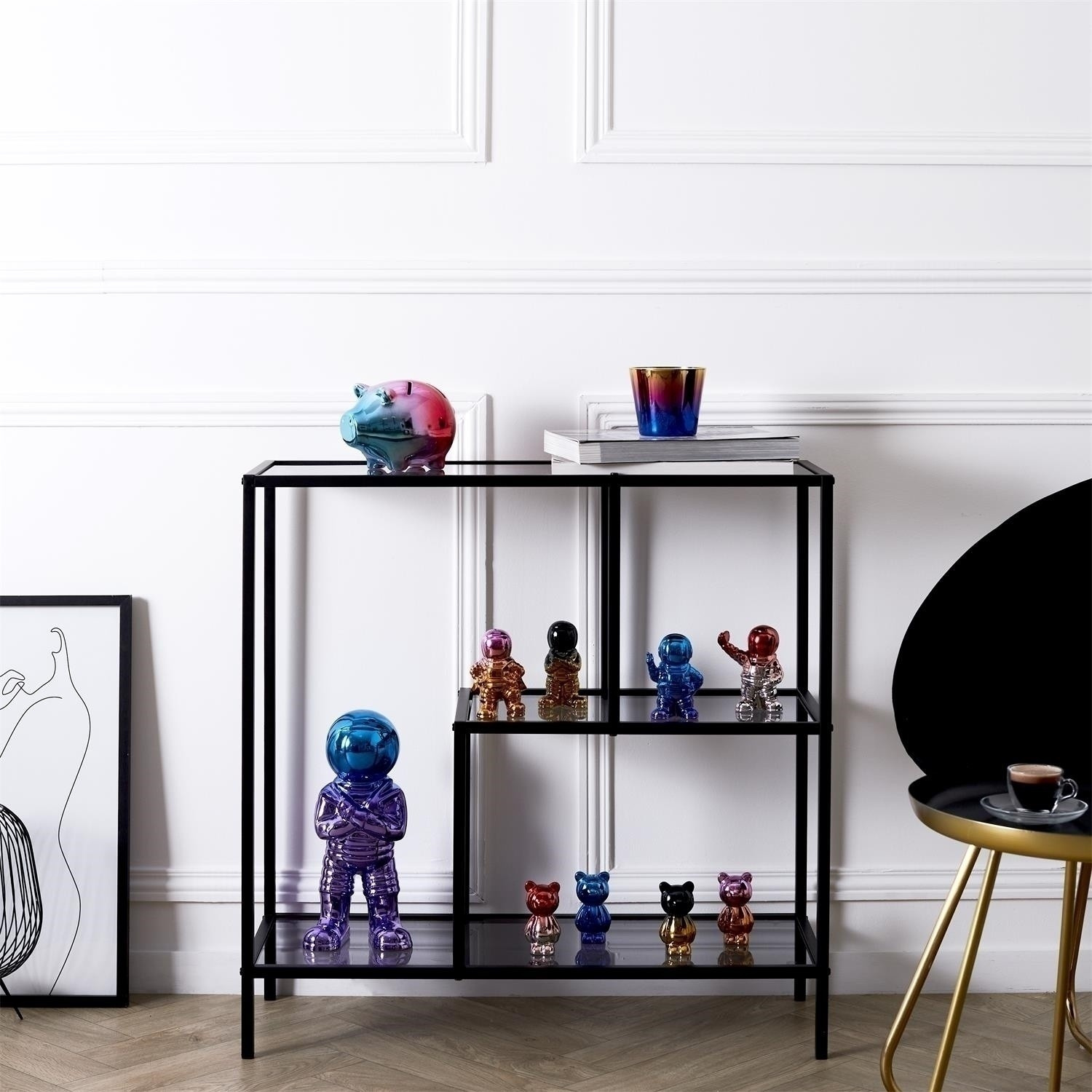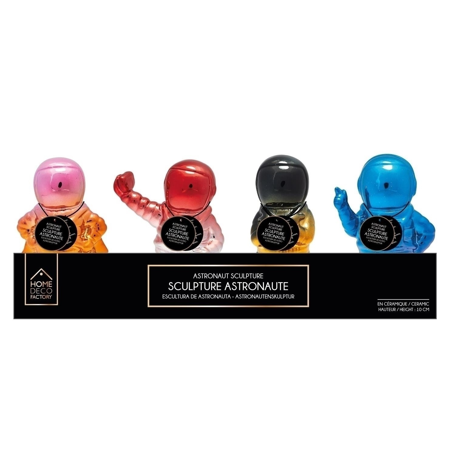 Dekoratív űrhajós alakú figura illik a karizmatikus stílusú, eredeti belső térbe. A kerámiából készült figura magas fényűre lett lakkozva két színnel, amelyek egymásba fonódnak. A figura különböző színekben és pozíciókban jelenik meg, ami lehetővé teszi a kombinálásukat.