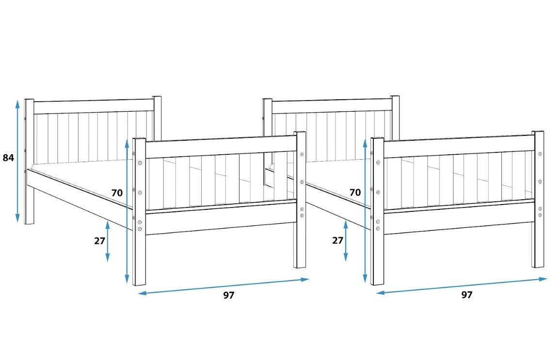 - Rama łóżka - wykonana z drewna sosnowego, pomalowana lakierem wodnym.