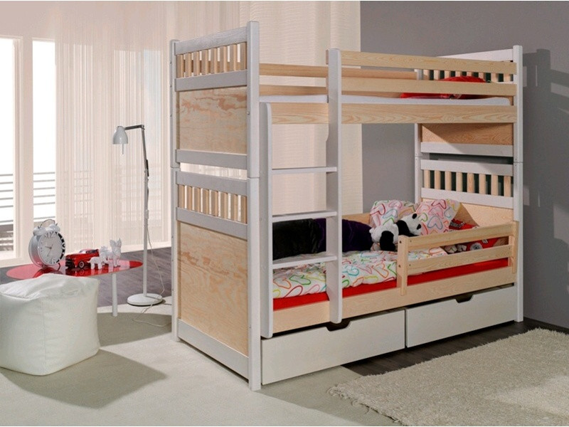 Dětská patrová postel SALOMON je vyrobena z kvalitního masivního borovicového dřeva. Součástí postele je rošt (180x80 cm). Cena postele je uvedena v přírodním provedení. Za barevné provedení je příplatek 330.- kč. Postel lze vyrobit na zakázku i ve Vámi požadovaném rozměru za příplatek, který Vám sdělíme dle Vašeho požadavku.