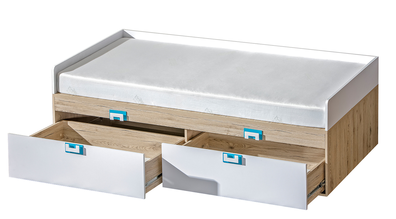Dětská postel NICO 14, Světlý Dub/Bílá/Tyrkys
