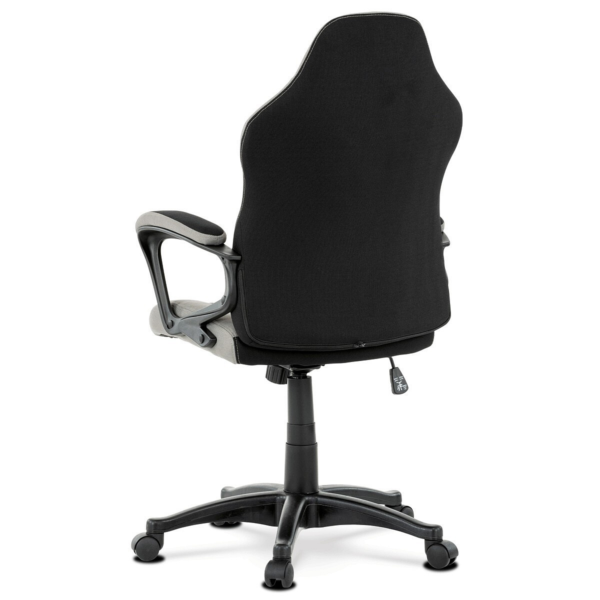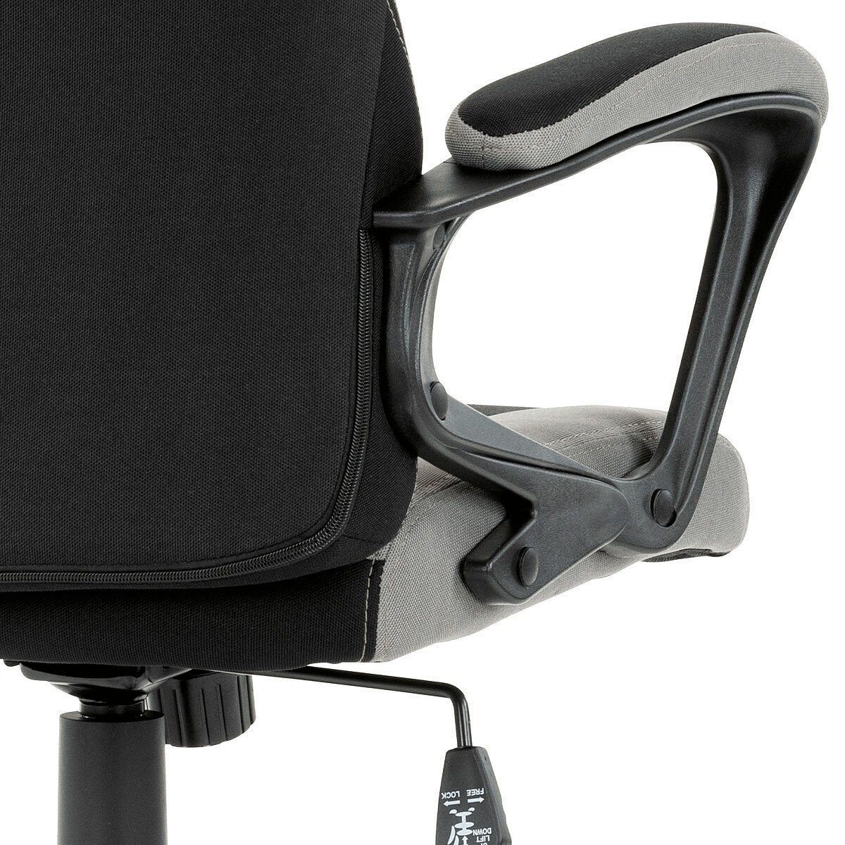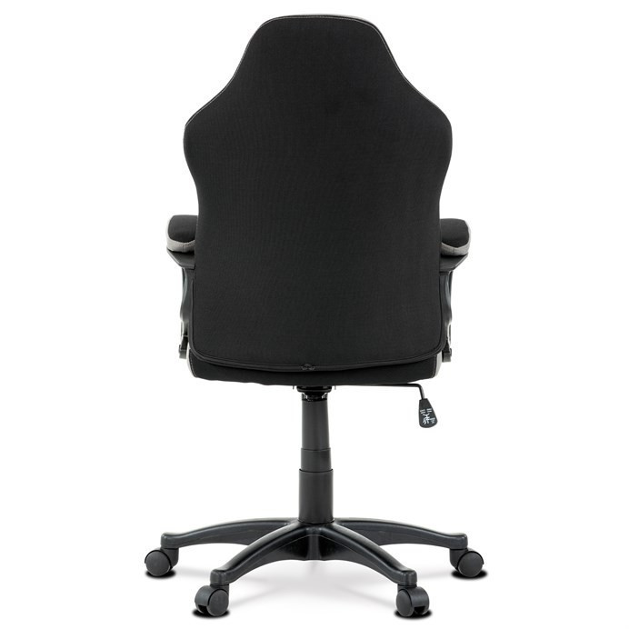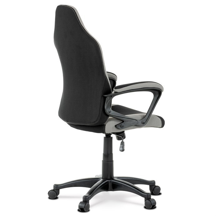 Elegantní kancelářská i herní židle se zaoblenými liniemi, obvodovým prošitím v šedé barvě a výrazným tvarovým prošitím sedáku i opěráku. Potah je kombinací černé a světle šedé látky hladké látky s decentním růžovým detailem na opěráku i sedáku. Polstrování je z kvalitní PU pěny. Židle je vybavena houpacím mechanismem s nastavením protiváhy a aretací v základní poloze. Tuhost protiváhy lze regulovat velkým plastovým šroubem, umístěným pod sedákem. Výška sezení se upravuje páčkou na pravé straně přes kvalitní plynový píst. Znavené ruce si velice pohodlně položíte na plastové područky, na ložné ploše polstrované černou a šedou látkou. Šíře područek je úžasných 7,5 cm, ložná plocha 31 cm a výška 3 cm. Opěrák je vyšší, částečně prodyšný a s integrovanou statickou opěrkou hlavy. Zvýšené okraje sedáku i opěráku podporují správné držení těla i páteře a slouží jako výborná opora. Kříž je černý plastový o průměru je 65 cm, což zajišťuje výbornou stabilitu i u fyzicky náročnějších her. Kolečka jsou plastová pr. 5 cm. Nosnost židle je až 120 kg.