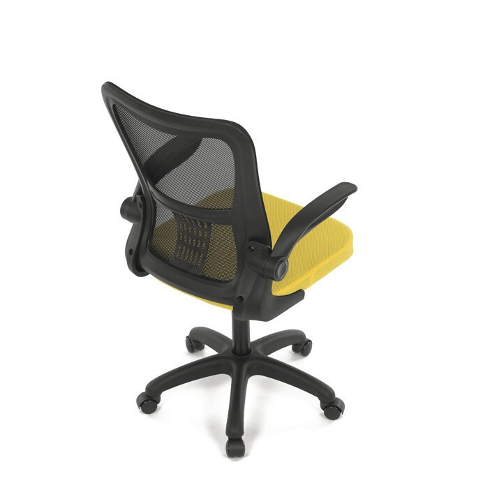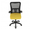 Kancelářská židle s označením KA-K2006 YEL nabízí kombinaci moderního designu a funkčnosti vhodnou pro každodenní práci. Opěrák je vyroben z černé prodyšné síťoviny, která zajišťuje optimální cirkulaci vzduchu a podporuje pohodlí během dlouhého sezení. Sedák je potažen žlutou látkou, která přináší živý barevný akcent a je vyplněn komfortní pěnou. Odklápěcí plastové područky umožňují snadné přizpůsobení prostoru a lepší manipulaci s židlí. Houpací mechanismus s možností nastavení výšky sedáku přispívá k ergonomickému sezení, zatímco pevný plastový kříž zajišťuje stabilitu a odolnost. Židle je určena pro použití na tvrdých površích díky kolečkům přizpůsobeným tomuto typu podlahy.
