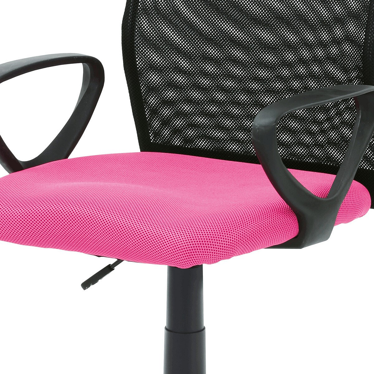 Kancelářská židle s označením KA-B047 PINK nabízí kombinaci růžového látkového sedáku a černého prodyšného síťovaného opěráku, který zajišťuje optimální cirkulaci vzduchu během sezení. Výškově nastavitelný píst umožňuje snadné přizpůsobení výšky sedáku individuálním potřebám uživatele. Pevné plastové područky doplňují jednoduchý design a podporují správnou polohu paží. Židle je vybavena plastovým křížem s kolečky, která umožňují snadný pohyb po různých typech podlah. Díky kvalitnímu zpracování a ergonomickému provedení je vhodná zejména pro dětské pracovní kouty či domácí kanceláře.