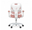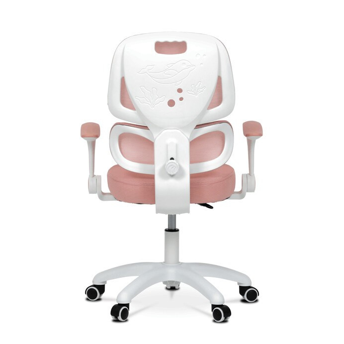 Dětská židle s růžovou síťovinou nabízí moderní a vzdušný design vhodný pro mladší uživatele. Opěradlo i sedák jsou potažené jemnou růžovou síťovinou, která zajišťuje dobrou cirkulaci vzduchu a příjemný komfort při sezení. Výškově nastavitelný opěrák a odklápěcí područky umožňují přizpůsobení židle aktuálním potřebám dítěte, zatímco pevný bílý plastový kříž s kolečky určenými pro tvrdé podlahy zajišťuje stabilitu a snadnou mobilitu. Bederní opěrka podporuje správné držení těla během práce nebo hry. Celková konstrukce je navržena tak, aby poskytovala ergonomickou podporu a dlouhodobé pohodlí.