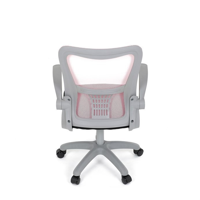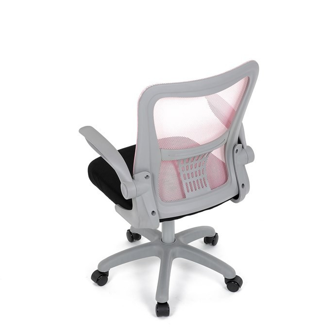 Tato židle je navržena s pevnou bederní opěrkou, která zajišťuje nezbytnou stabilitu spodní části zad, což zlepšuje držení těla a pohodlí během sezení. Ačkoli se kvůli elegantnějšímu vzhledu vzdává čalouněných područek, kompenzuje to promyšleně navrženými sklápěcími područkami, které umožňují přizpůsobitelné sezení na míru potřebám uživatele. Tyto područky zajišťují flexibilitu i oporu, takže je židle ideální volbou pro různá prostředí.