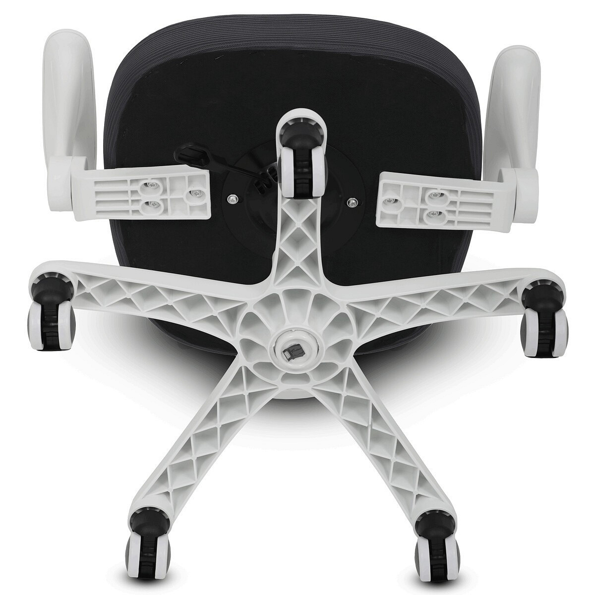 Dětská židle s šedou síťovinou nabízí pohodlné a zdravé sezení díky ergonomicky tvarované bederní opěrce a výškově nastavitelnému opěráku. Sedák je potažený prodyšným materiálem, který zajišťuje optimální cirkulaci vzduchu během dlouhého sezení. Odklápěcí područky umožňují snadné přizpůsobení prostoru a bílý plastový kříž s kolečky je určený pro tvrdé podlahy, což zajišťuje stabilitu a snadnou mobilitu. Mechanika umožňuje plynulé nastavení výšky sedáku podle potřeby dítěte. Celková konstrukce je navržena tak, aby podporovala správné držení těla a komfort při práci nebo hraní.