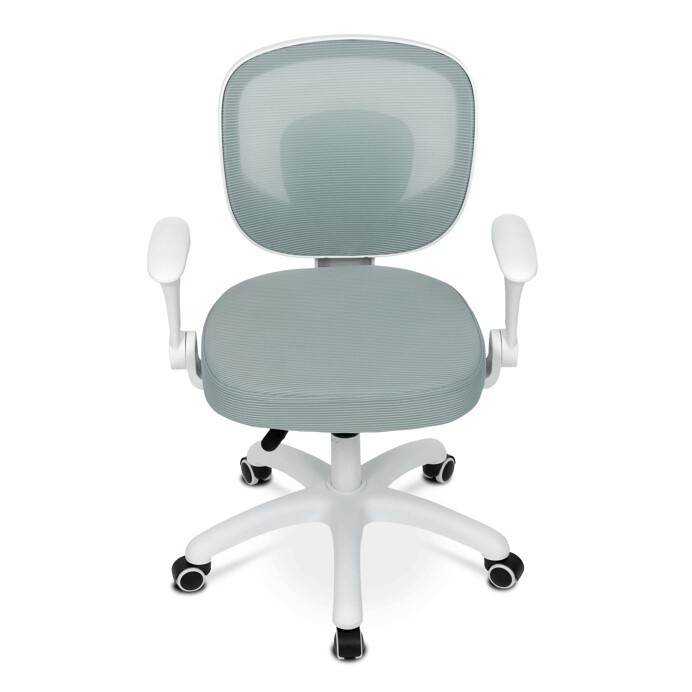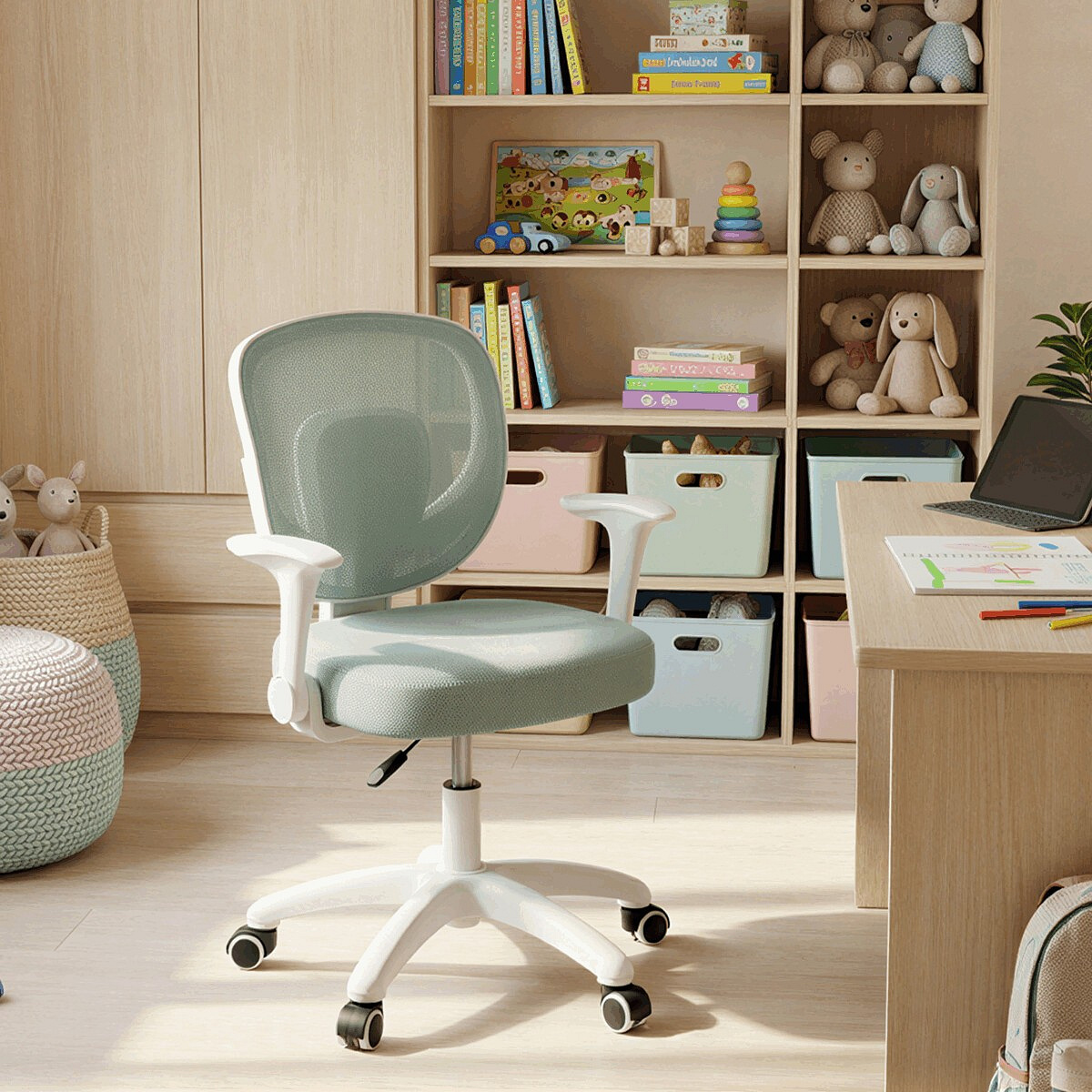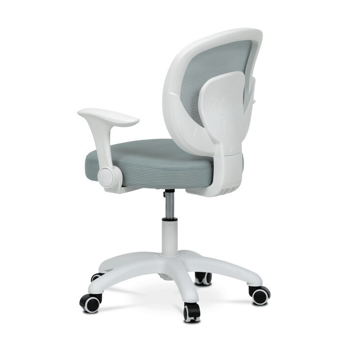 Dětská židle s konstrukcí značky Autronic nabízí kombinaci svěží zelené síťoviny a bílého plastového kříže, který je navržen pro použití na tvrdých podlahách. Sedák je čalouněný příjemnou zelenou látkou, zatímco opěradlo tvoří prodyšná síťovina podporující cirkulaci vzduchu během sezení. Odklápěcí područky umožňují snadné přizpůsobení prostoru a výškově nastavitelný mechanismus zajišťuje ergonomické sezení přizpůsobené dětskému uživateli. Plastový kříž s pěti rameny poskytuje stabilitu a kolečka jsou vhodná pro hladké povrchy, což usnadňuje pohyb židle. Tento model je ideální volbou pro dětské pokoje, kde je kladen důraz na pohodlí i praktičnost.