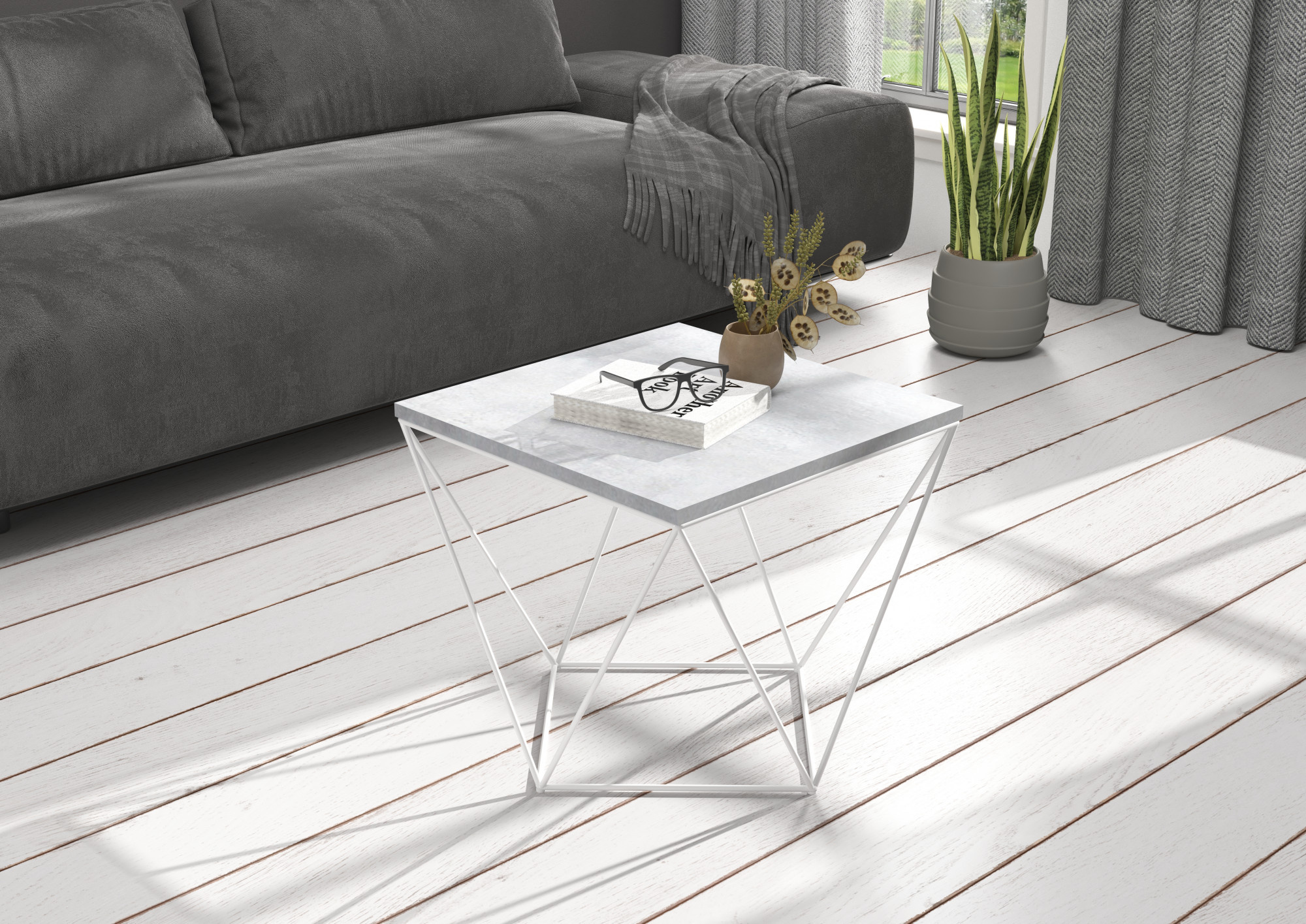 DIANA dohányzóasztal 50x50 Fehér+Beton
