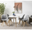 A Dima modern szék rendkívül elegáns anyagból készült. A Corsica világosszürke bársonyszövettel borított ülőke tökéletesen illik a természetes színű gumifa fából készült fa alaphoz. A széken használt szövet matt felületű, könnyen tisztítható és ellenáll a szennyeződéseknek. A szék boho stílusban lett tervezve. A termék könnyű, maximális terhelhetősége 120 kg. A szék összeszerelést igényel. Ülésmagasság: 46 Ülésmélység: 40,5 Ülésszélesség: 48 Max. darabszám kartonban: 2 Karton méretei: 71 cm x 51 cm x 38 cm
