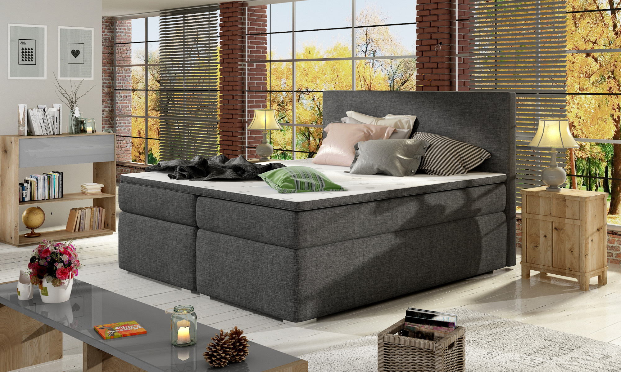 Divalo is a functional, elegant and classic boxspring continental bed with three sleeping surfaces to choose from: 140/ 160/ 180 x 200 cm. It is filled with a 20 cm high bonell mattress, which has been equipped with two additional layers - top and bottom - of T25 foam, as well as a 4 cm thick T21 foam topper.The distinctive features of this model include: a multitude of color variations, a high headrest, as well as elegant legs. The Divalo continental bed also has two spacious bedding containers, divided into three parts. It is certainly worth having such a bed in your apartment.