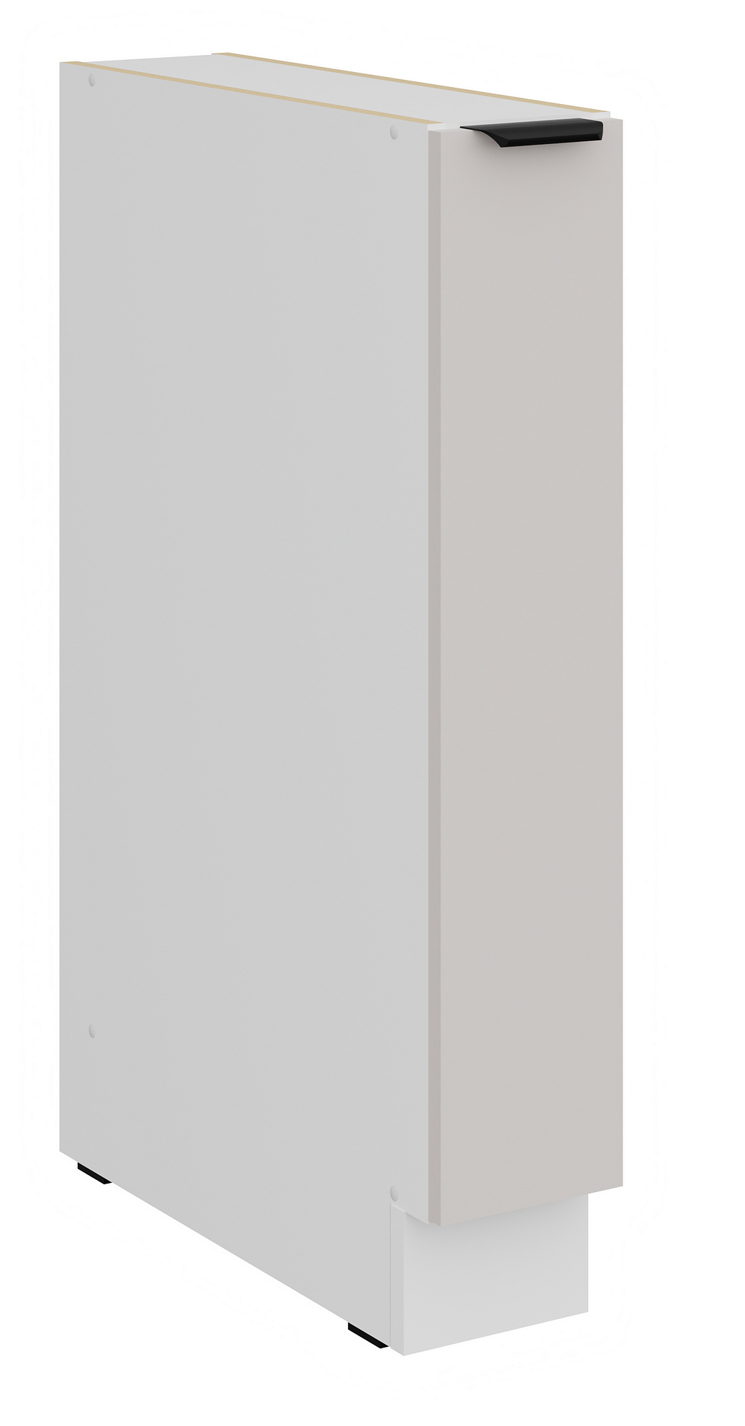 Dvířka skříňky jsou universální, což znamená, že je můžete namontovat jako pravé nebo levé, podle vašich potřeb a dispozice kuchyně. Vnitřek skříňky je v bílém provedení, což zajišťuje čistý a svěží vzhled.
