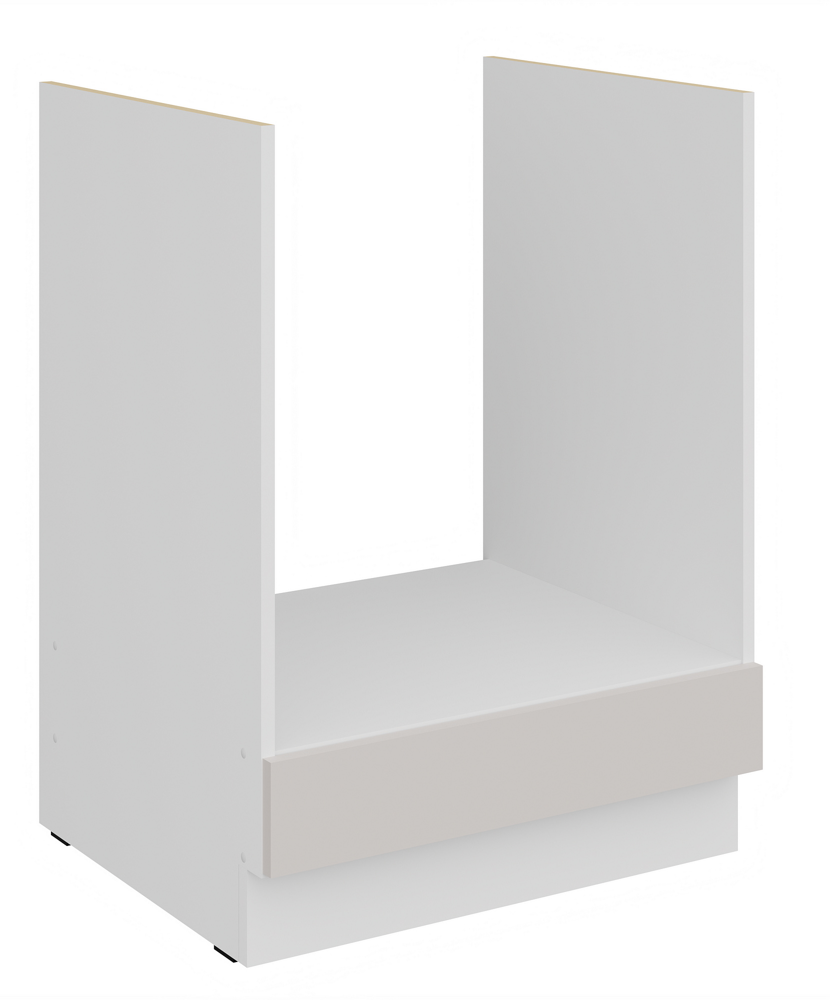 Dvířka a čela šuplíků jsou vyrobeny z laminátových desek vysoké kvality o tloušťce 16 mm v elegantní barvě kašmír. Jsou opatřena ABS hranami, které zvyšují jejich odolnost a přispívají k celkovému luxusnímu vzhledu.