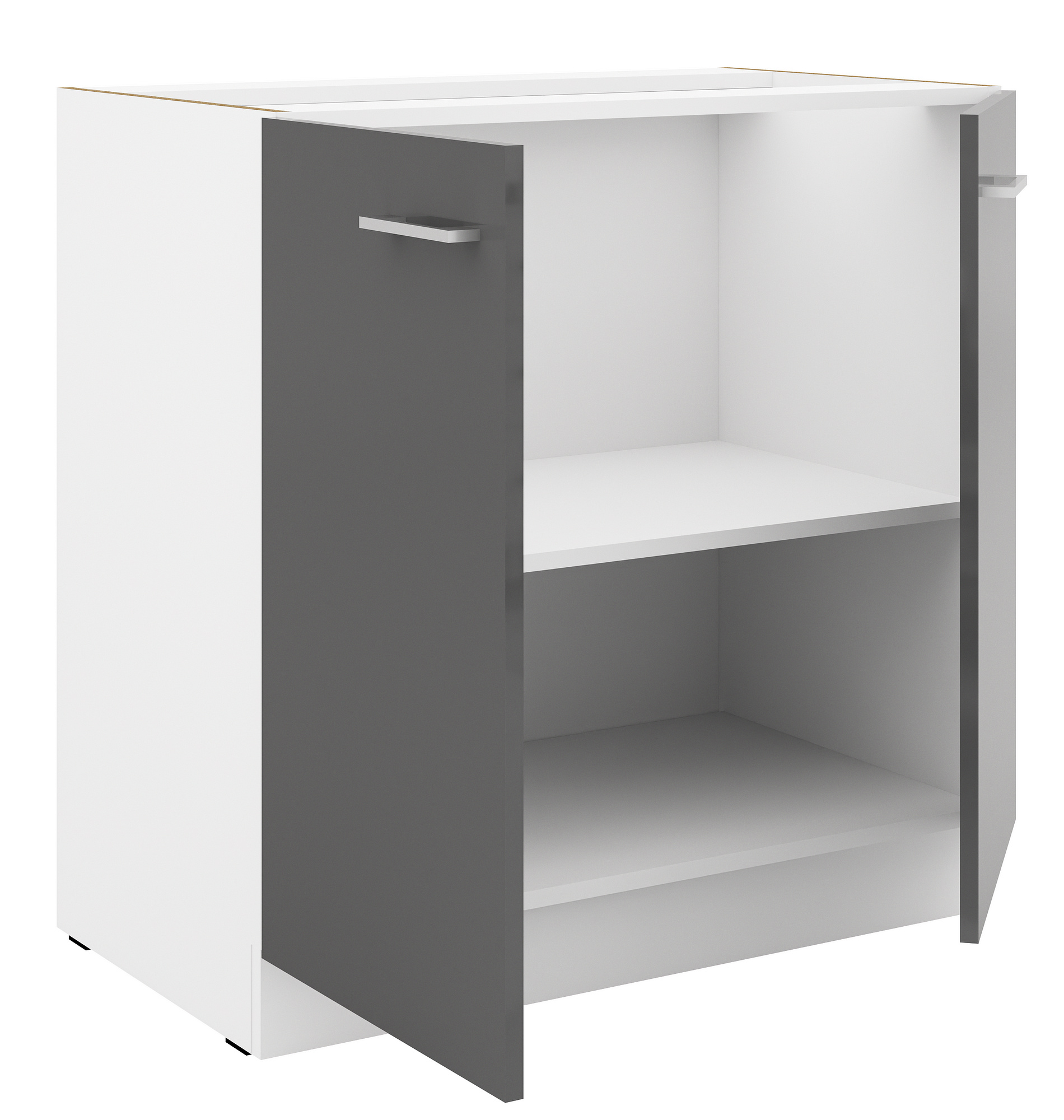Dolní skříňka SOLA - 80 D 2F BB, Bílá/Šedý Lesk