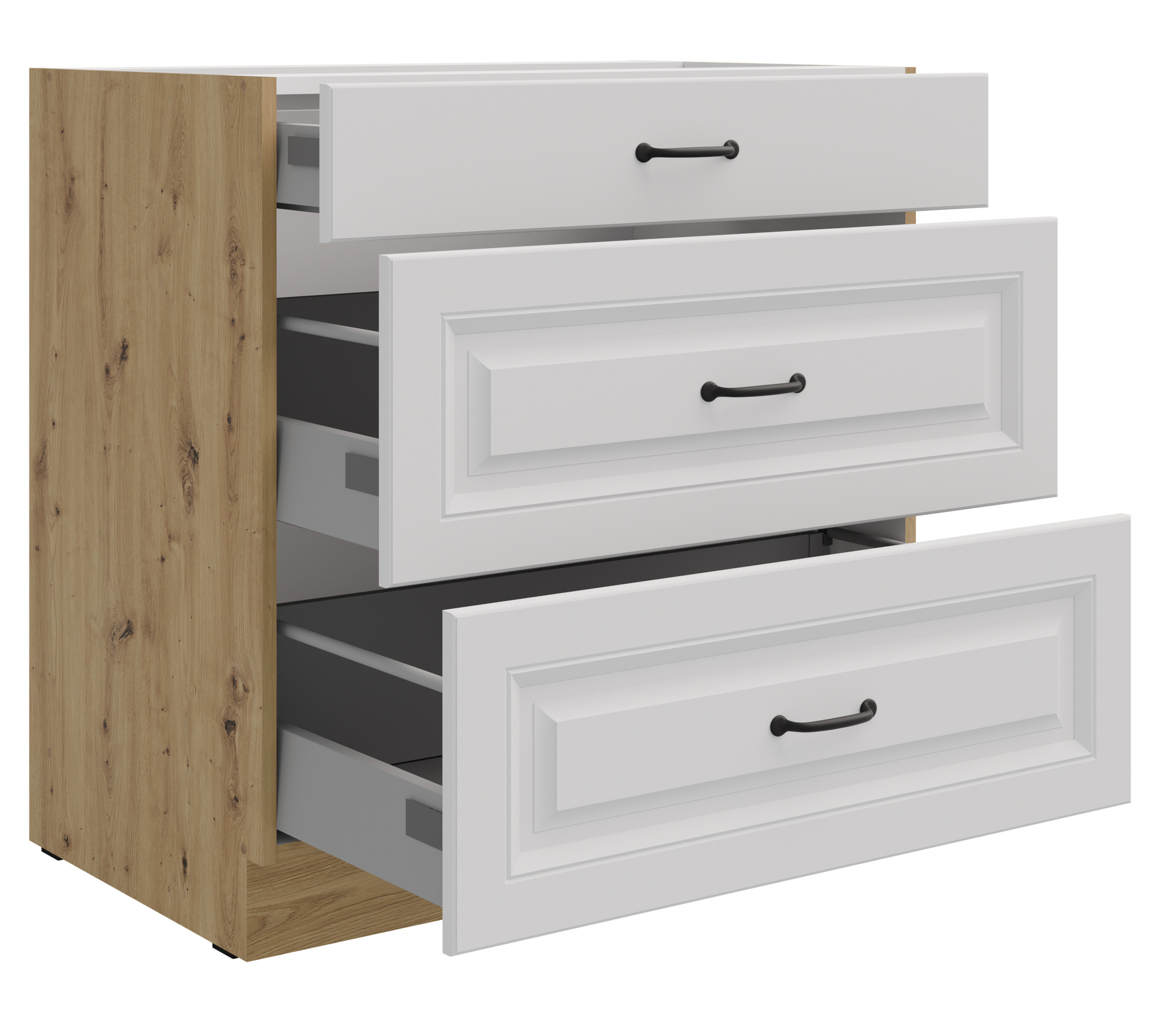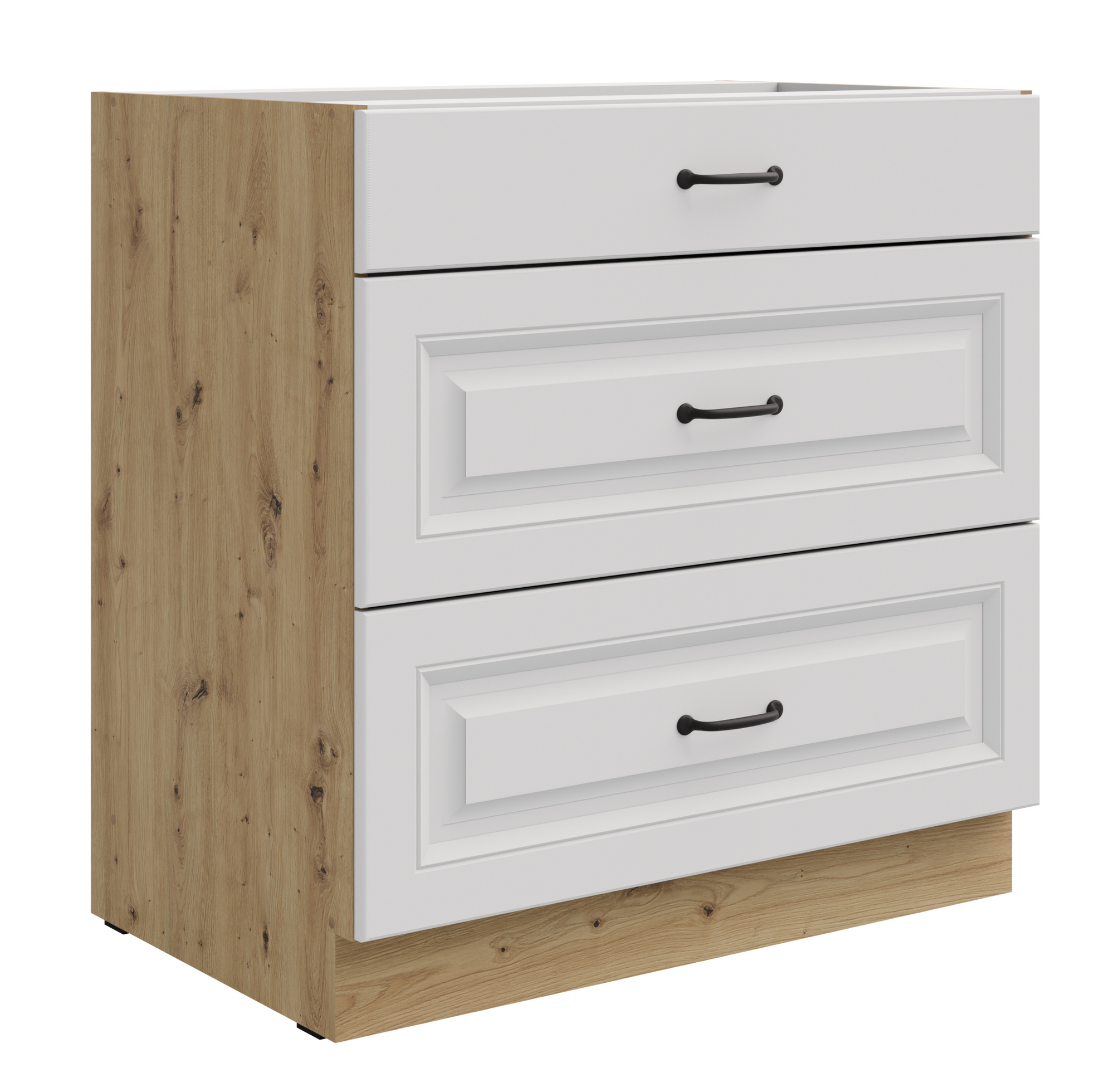 Dolní skříňka STELLO - 80 D 3S BB, Dub Artisan/Bílý mat