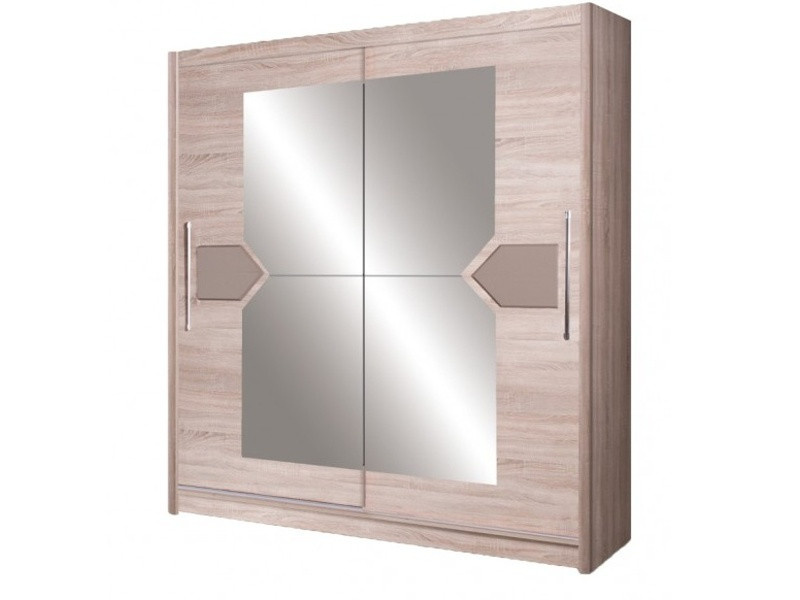 DOME šatní skříň s posuvnými dveřmi hodící se ke stejnojmenné ložnici. Skříně se vyrábí i v šíři 200 cm. Barva provedení v dubu Sonoma v kombinaci s capuccino leskem.