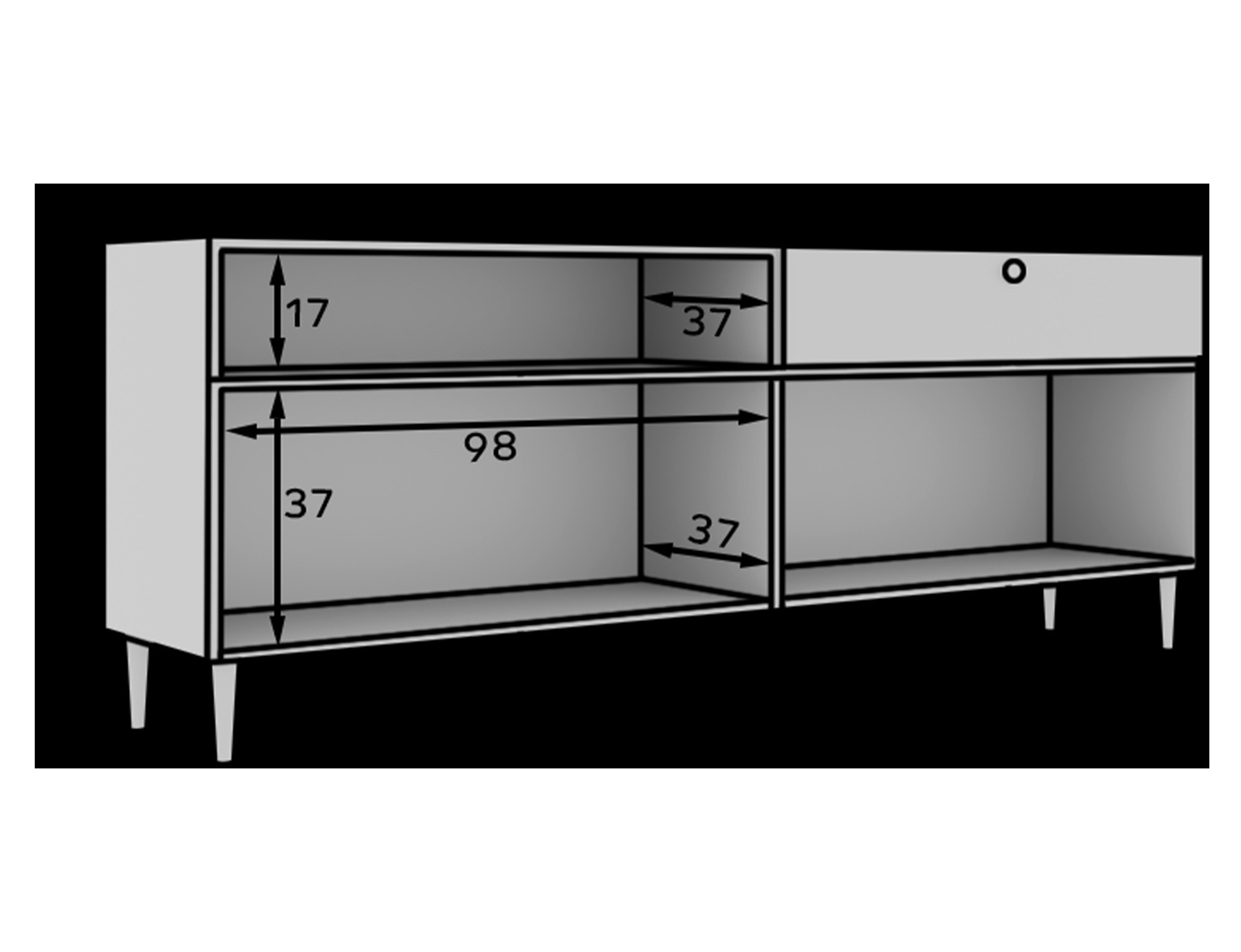 The Dullum sideboard is a sleek and practical piece of furniture with dimensions of 40 cm in depth, 200 cm in width, and 75 cm in height. The board thickness is 16 mm, ensuring a solid and durable structure. It features a ball-bearing guide, which allows for smooth and reliable drawer operation. The load capacity of each cabinet is 3 kg, making it suitable for storing various items while maintaining stability and functionality.