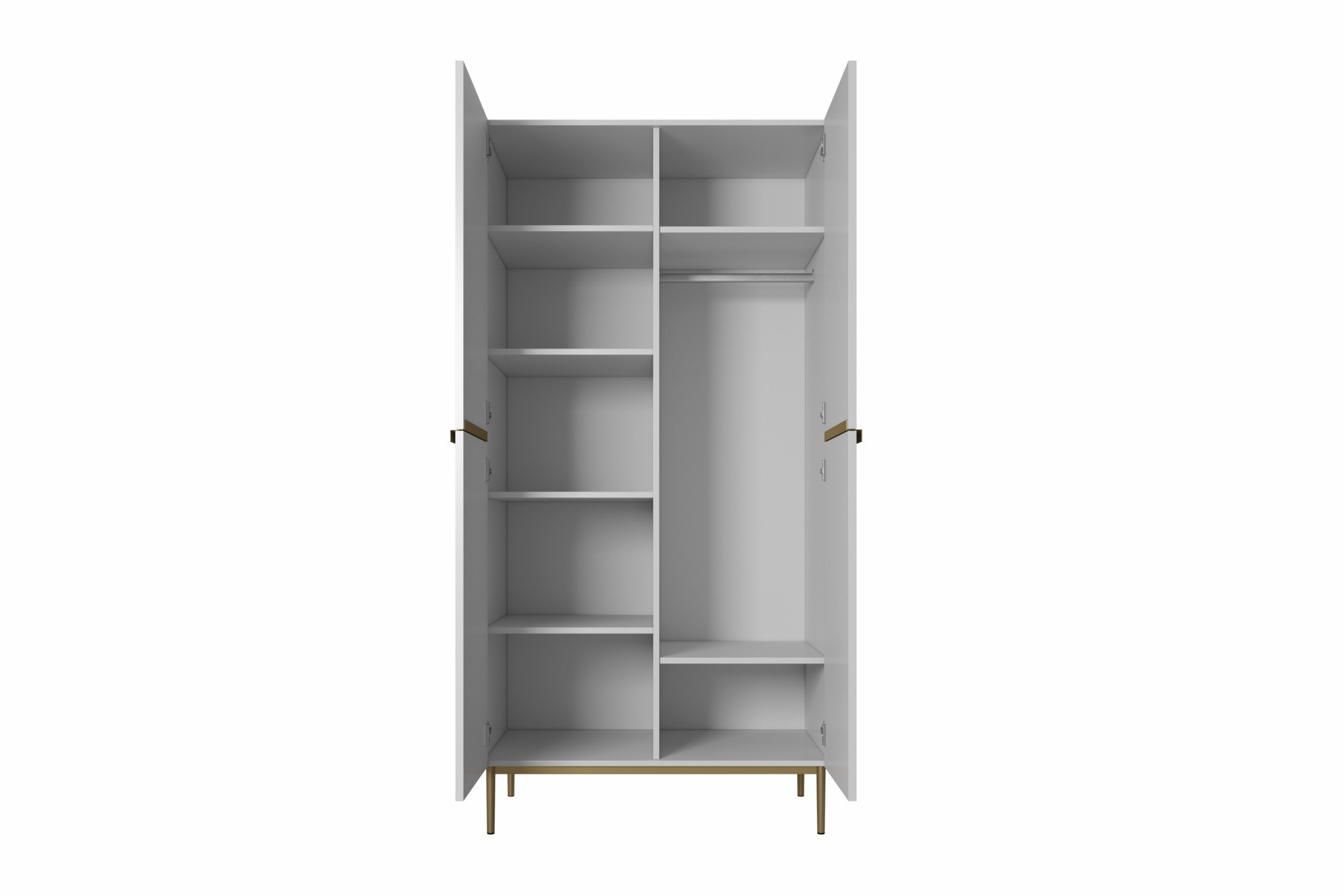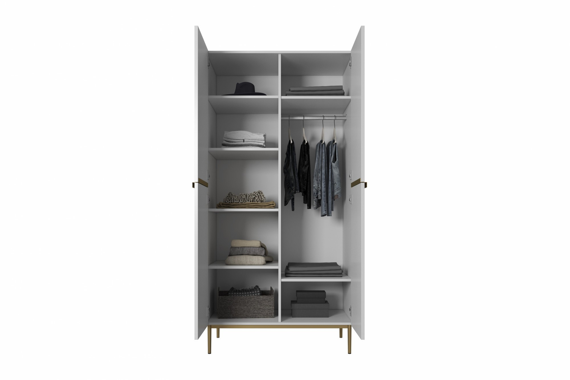 Dwudrzwiowa szafa Nicole z metalowymi nogami i uchwytami 100 cm - biały mat / złote nóżki, Szerokość: 100, Wysokość: 220, Głębokość: 62, Wysokość nóżek: 20, Głębokość blatu: , Montaż: