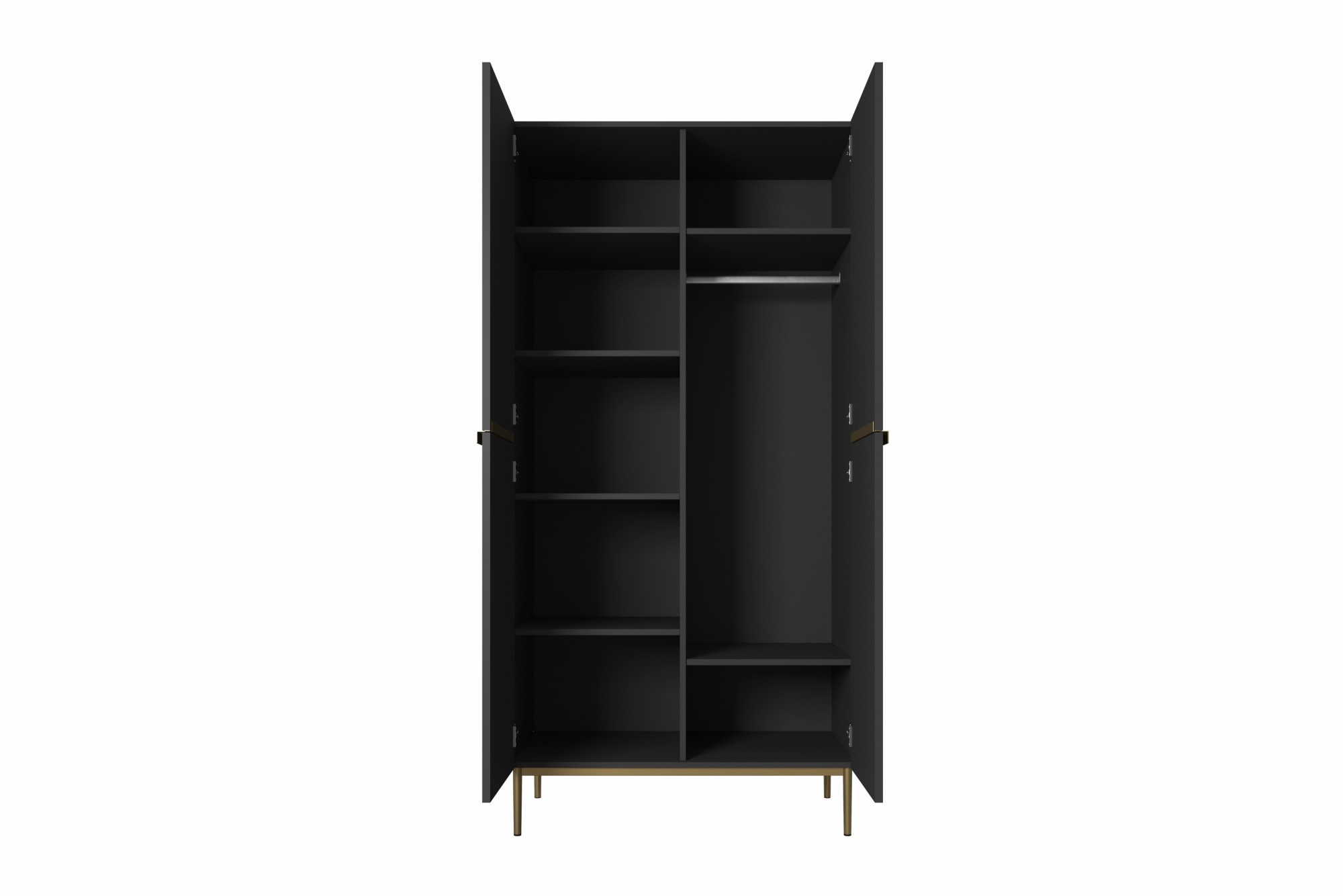 Dwudrzwiowa szafa Nicole z metalowymi nogami i uchwytami 100 cm - czarny mat / złote nóżki, Szerokość: 100, Wysokość: 220, Głębokość: 62, Wysokość nóżek: 20, Głębokość blatu: , Montaż: