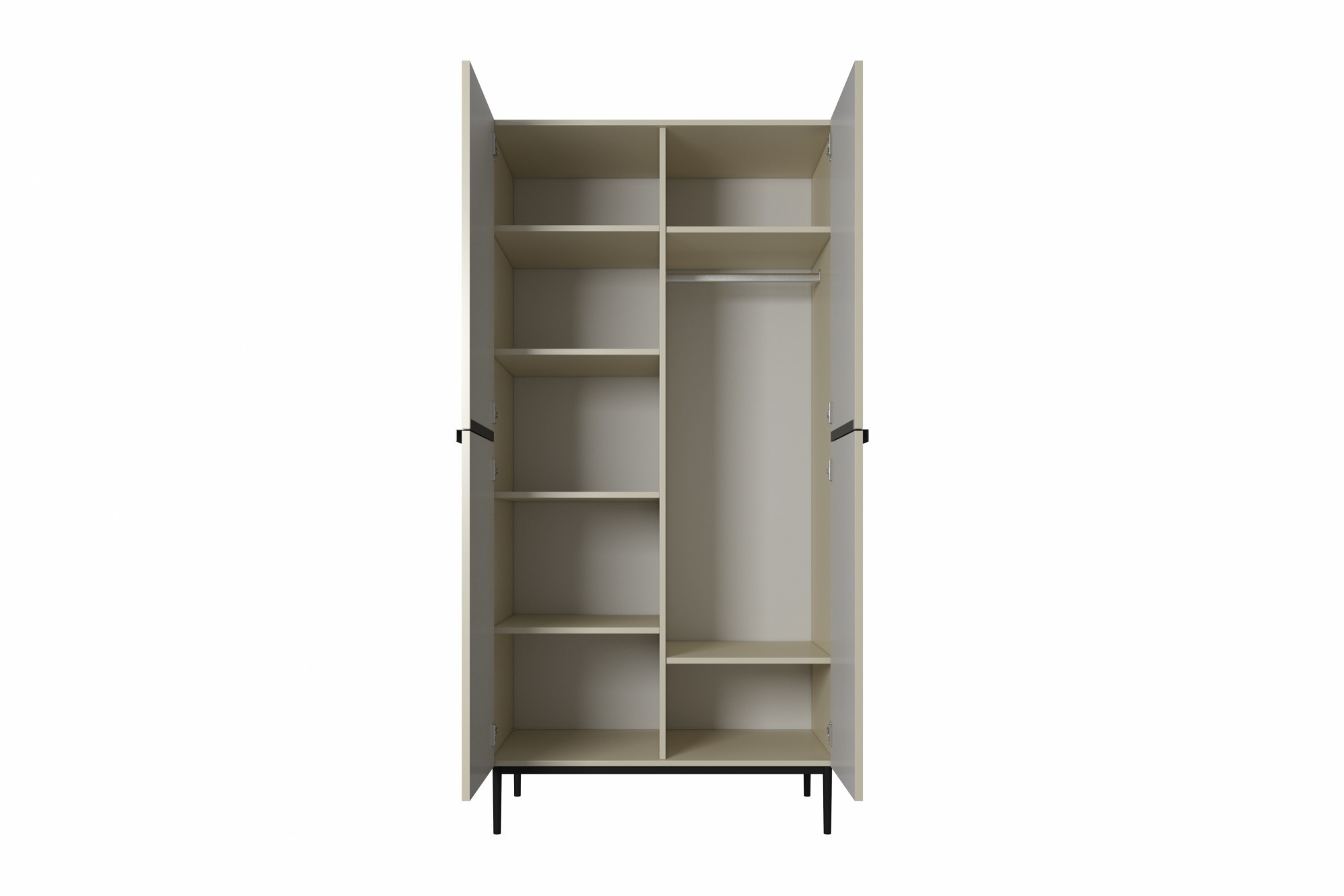 Dwudrzwiowa szafa Nicole z metalowymi nogami i uchwytami 100 cm - kaszmir / czarne nóżki