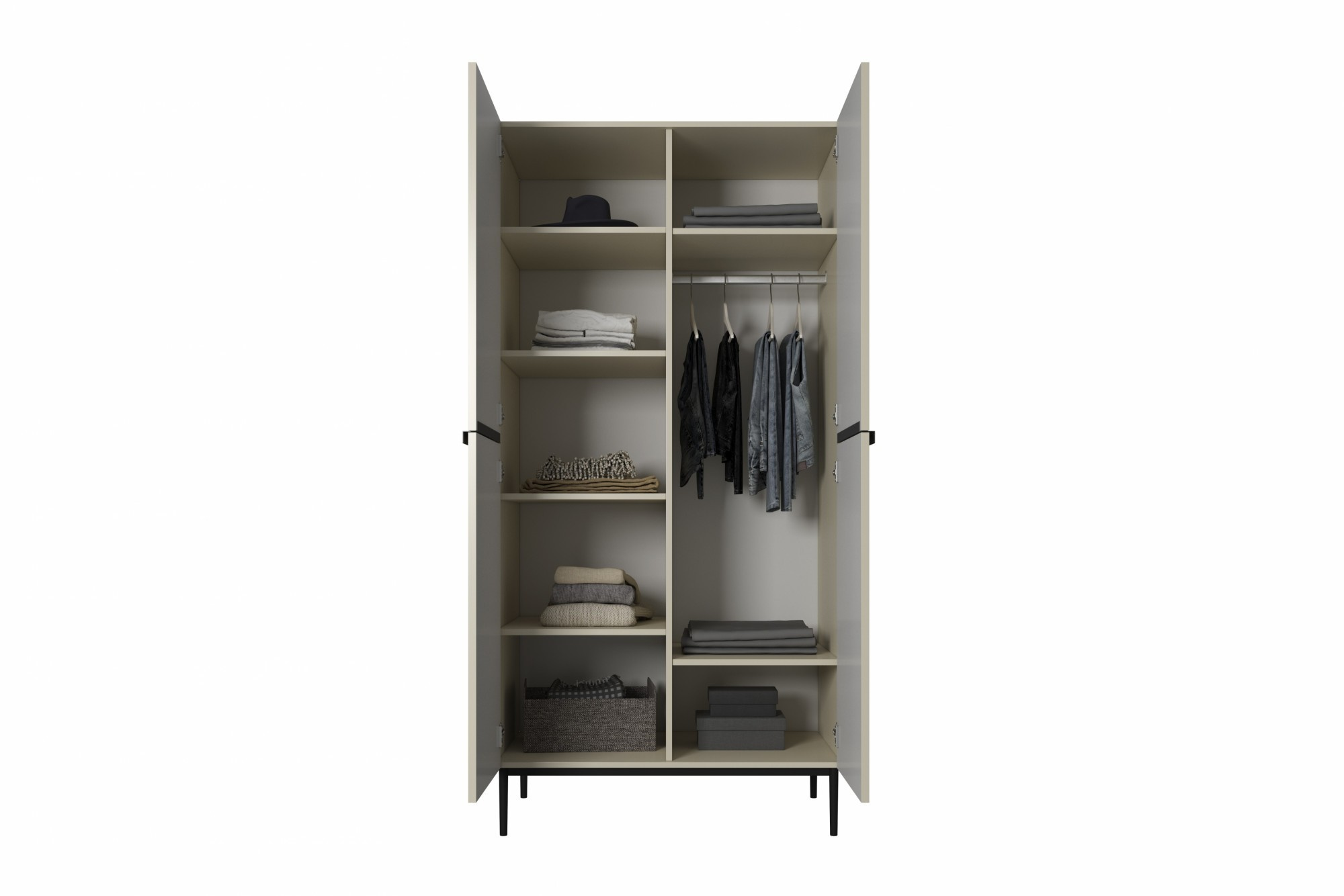 Dwudrzwiowa szafa Nicole z metalowymi nogami i uchwytami 100 cm - kaszmir / czarne nóżki, Szerokość: 100, Wysokość: 220, Głębokość: 62, Wysokość nóżek: 20, Głębokość blatu: , Montaż: