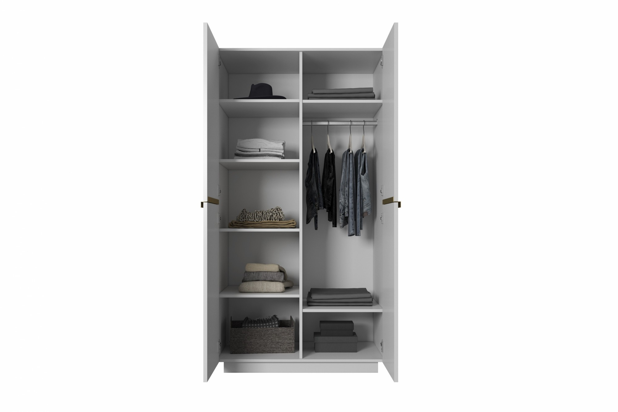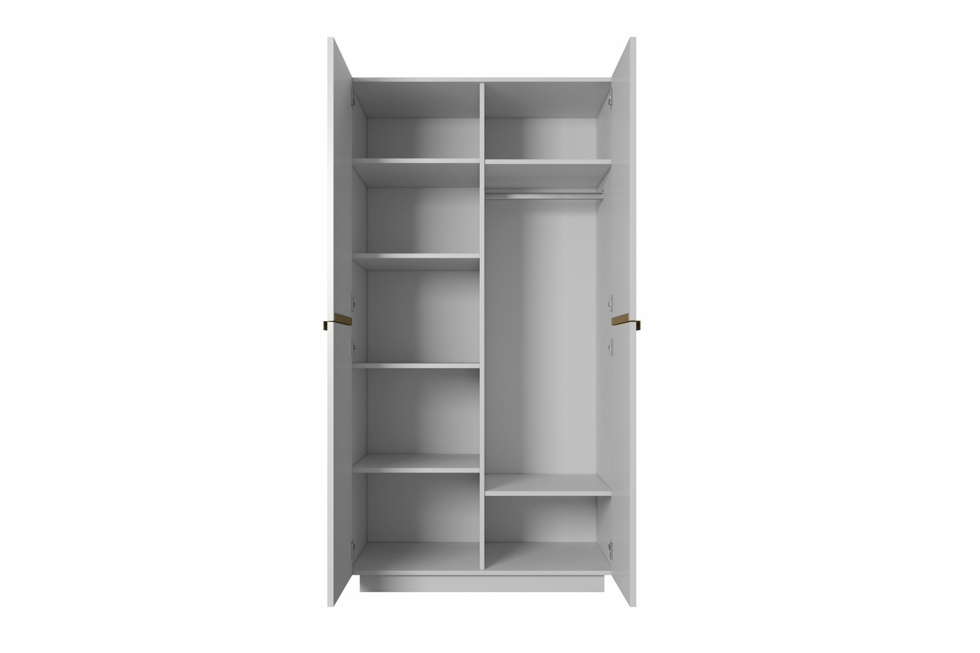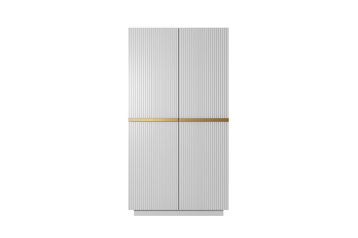 Dwudrzwiowa szafa Nicole z ryflowanym frontem i metalowymi uchwytami 100 cm - biały mat / złote uchwyty, Szerokość: 100, Wysokość: 207, Głębokość: 62, Wysokość nóżek: , Głębokość blatu: , Montaż: